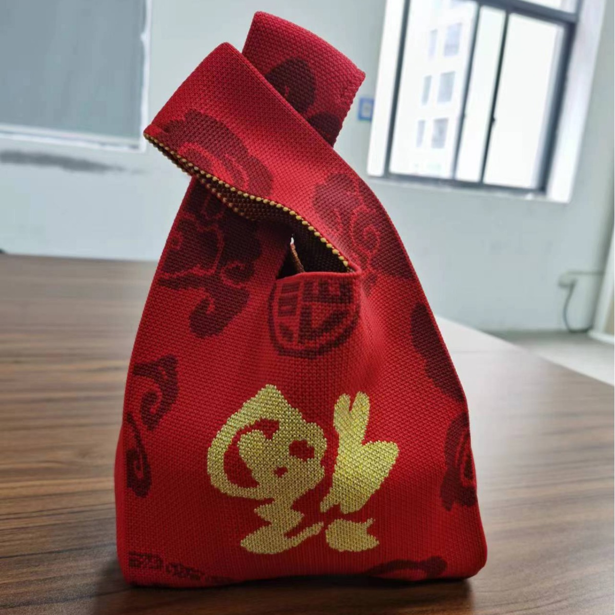 새해 동반 선물 레드 핸드 헬드 짠 가방 축제 포춘 가방 대용량 토트 백 손목 가방스토어 가기