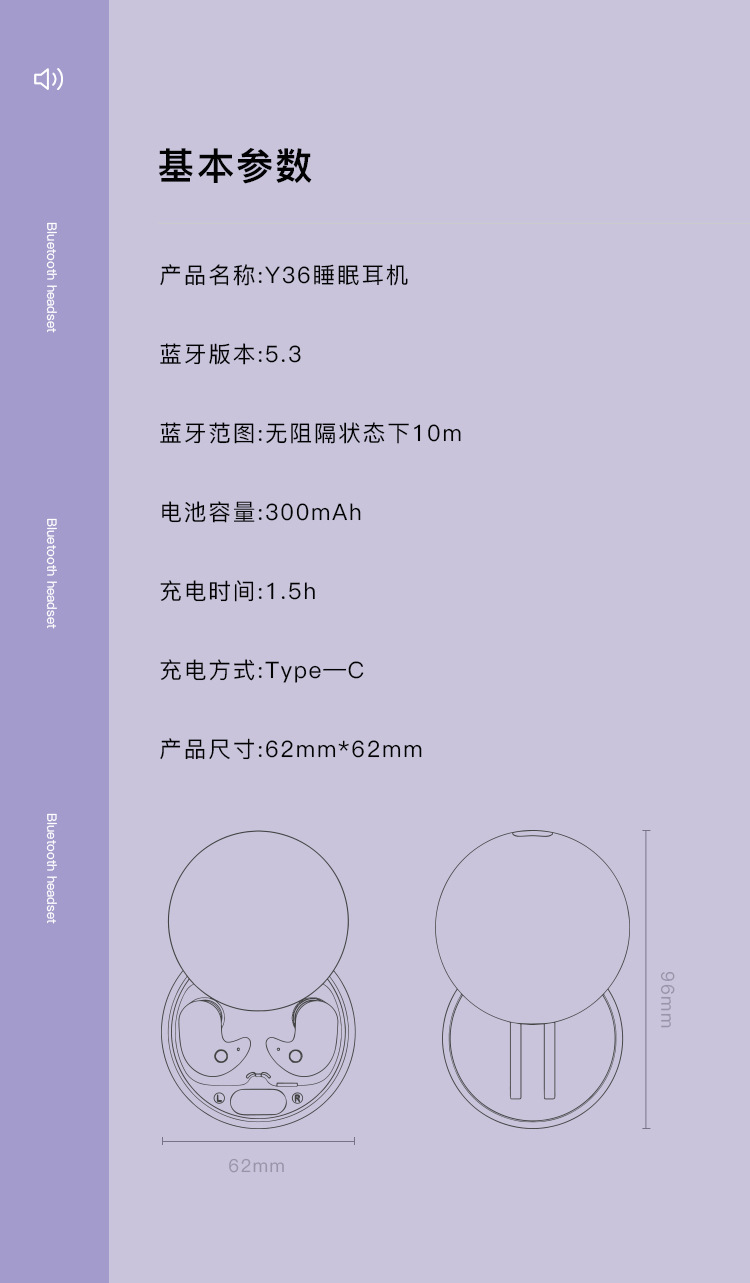 새로운 Y36 수면 블루투스 헤드셋 5. 3tws 리얼 무선 미니 인 이어 사이드 슬리핑 스포츠 헤드셋
