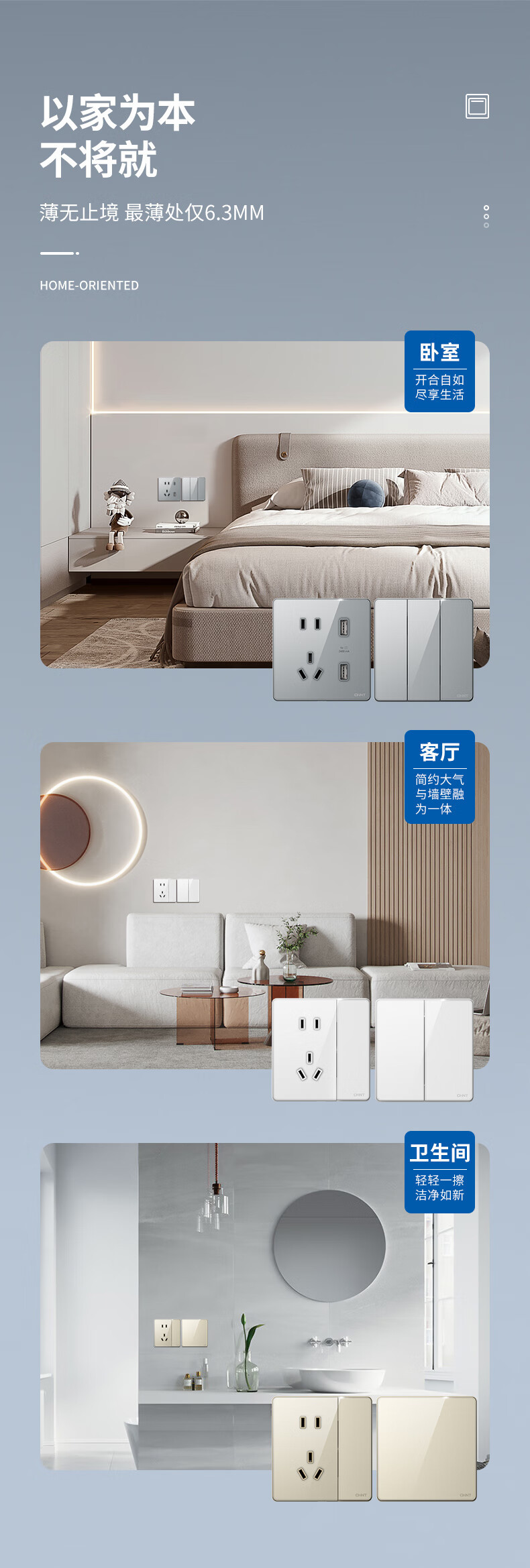 CHNT 스위치 소켓 벽 패널 3LD 시리즈 슬림 유리 대형 플레이트 스위치 5 홀 소켓스토어 가기