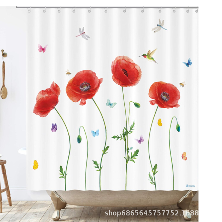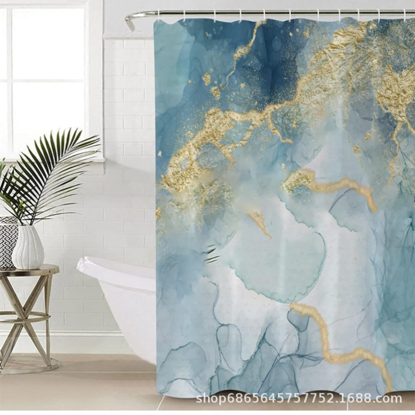 분리형 커튼 샤워커튼 아마존 해외 판매 인기 방수 방곰팡이 3D 디지털 프린팅 녹색 식물 프린팅 샤워커튼스토어 가기