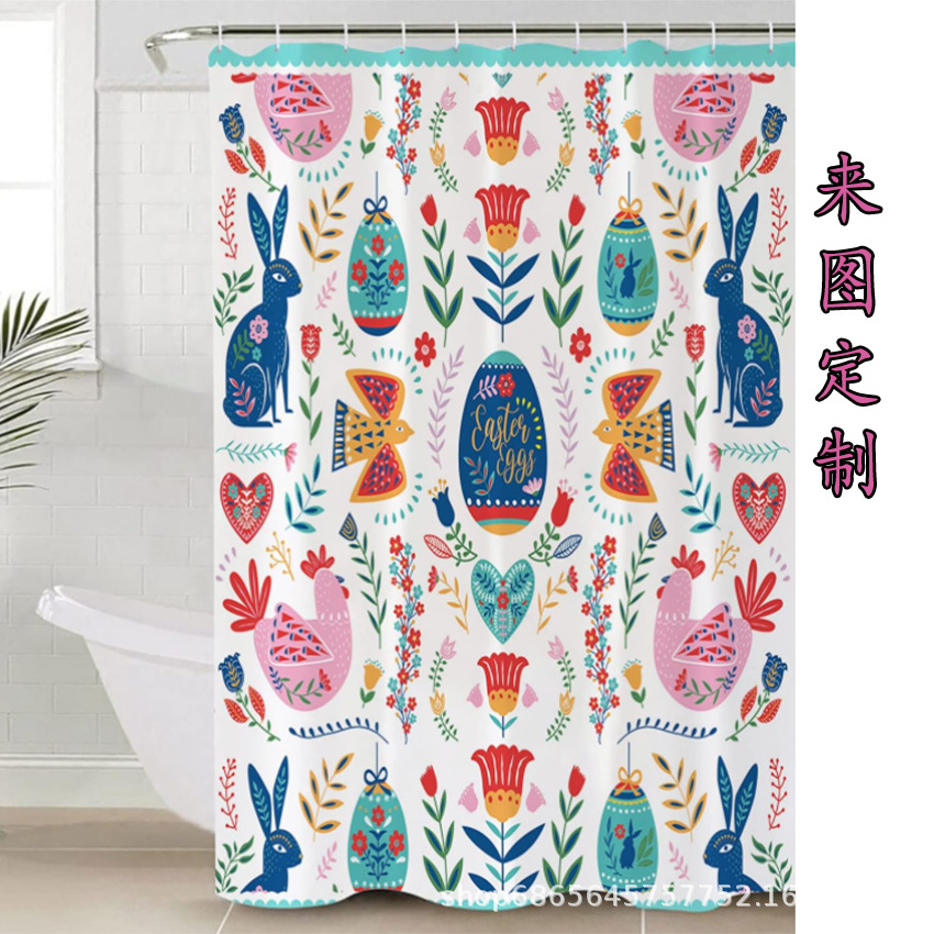 분리형 커튼 샤워커튼 아마존 해외 판매 인기 방수 방곰팡이 3D 디지털 프린팅 녹색 식물 프린팅 샤워커튼