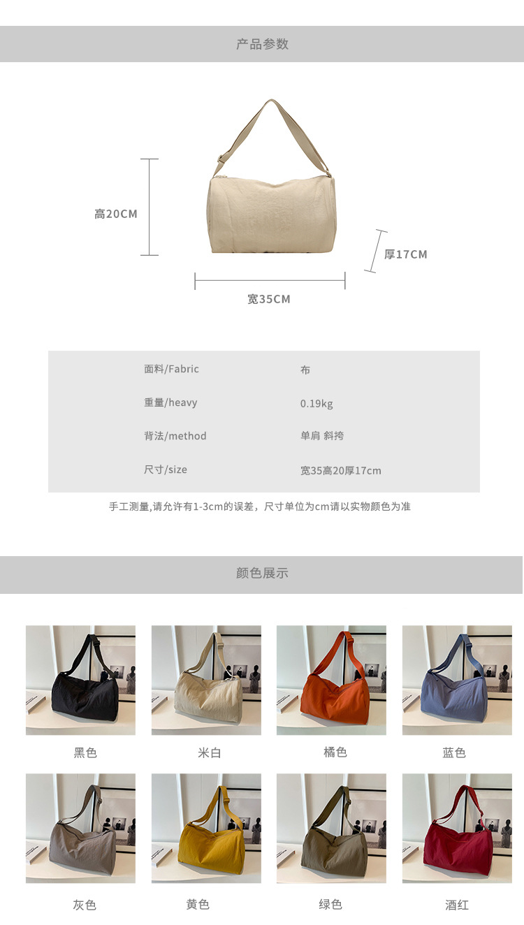 캐주얼 크로스 바디 백 여성 모리 스타일 예술적 올 매치 베개 가방 대용량 예술적 간단한 솔리드 컬러 스포츠 숄더 백