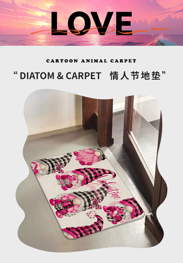 아마존 새로운 발렌타인 데이 매트 만화 드워프 엔트리 매트 화장실 물 흡수성 미끄럼 방지 발 매트 스팟