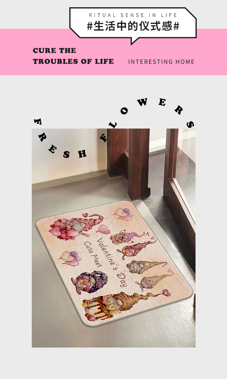 아마존 새로운 발렌타인 데이 매트 만화 드워프 엔트리 매트 화장실 물 흡수성 미끄럼 방지 발 매트 스팟스토어 가기