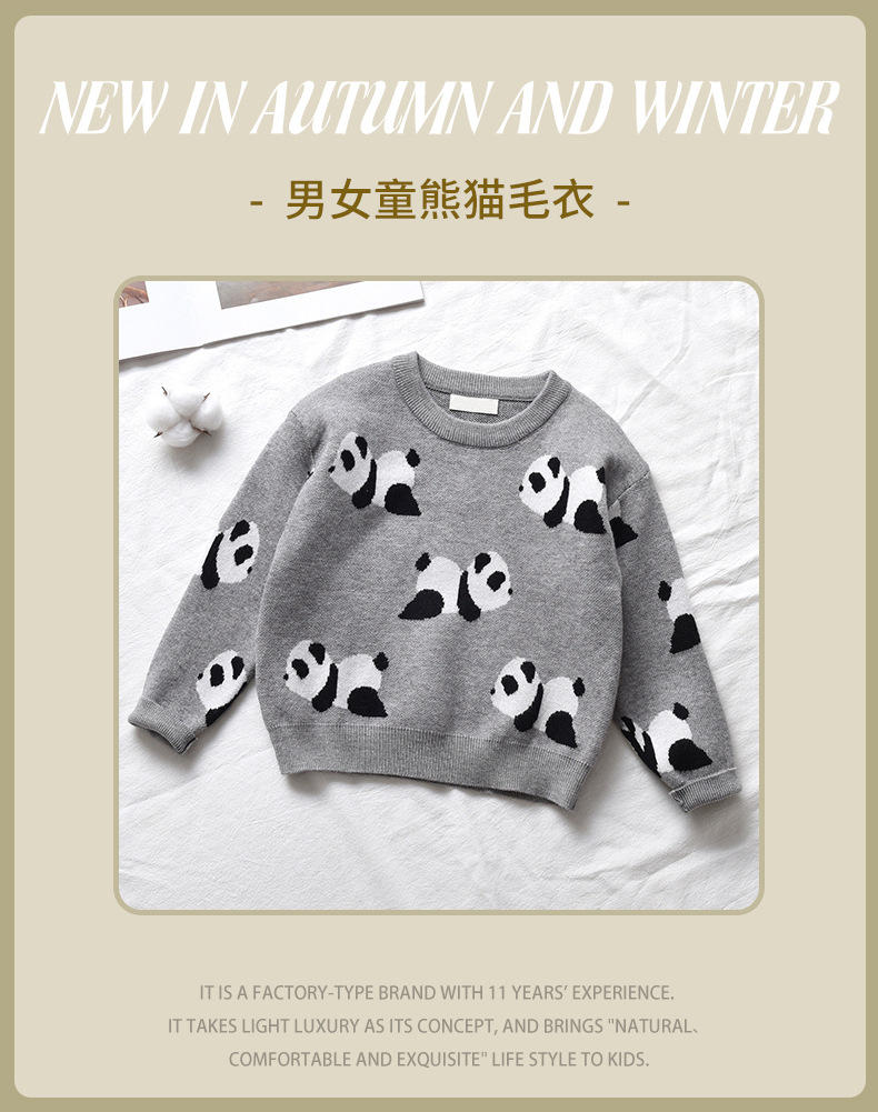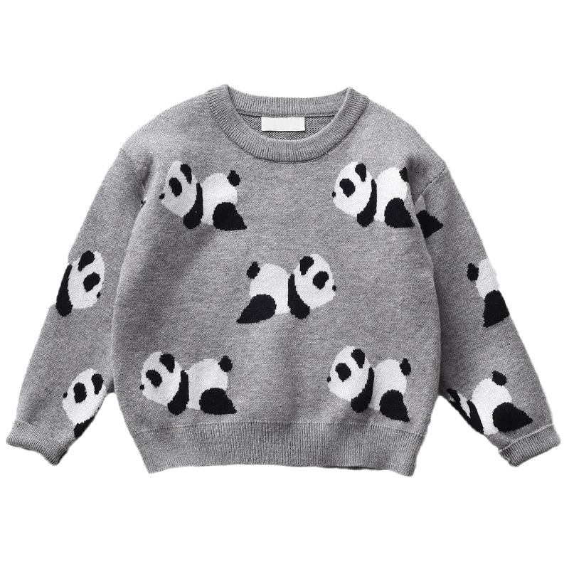 어린이 스웨터 팬더 라운드넥 니트 캐주얼 상의 2025 신상 남아 여아 스웨터 트렌디한 가을 겨울 의류스토어 가기
