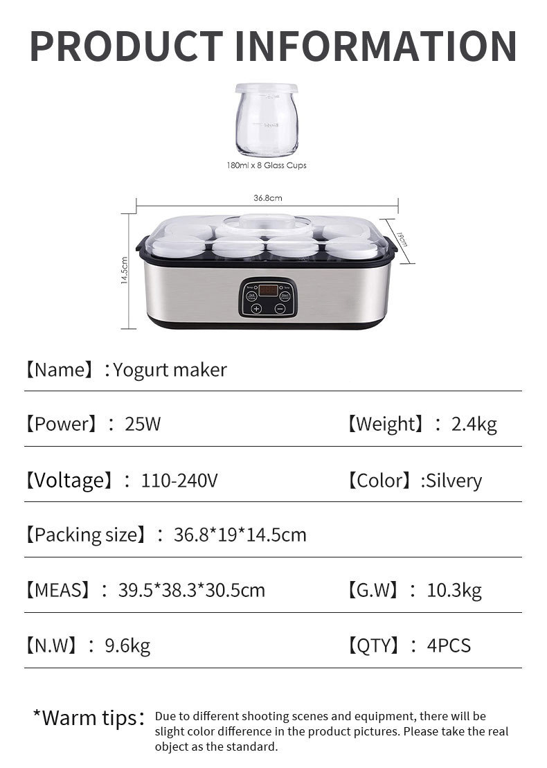 8컵 수제 요구르트 발효기 아침식사 기계 상업용 잼 아이스크림 요구르트 제조기 요거트 메이커스토어 가기