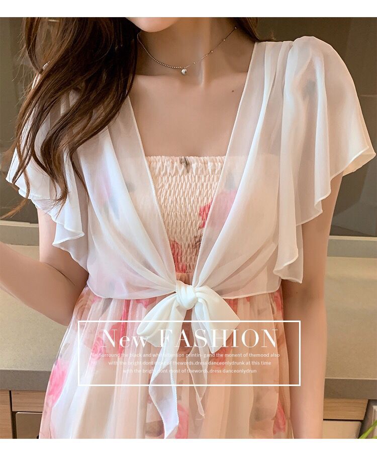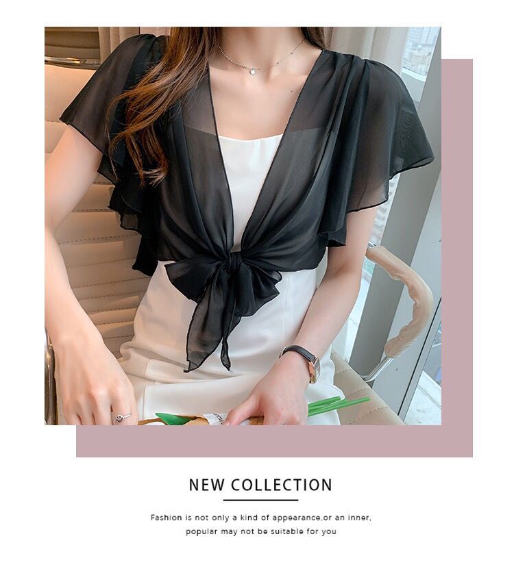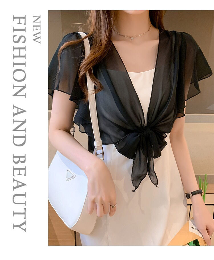 여름 쉬폰 숄 여성 서스펜더 스커트 케이프 작은 양복 조끼 겉옷 선 스크린 카디건 요정 블라우스 얇은 코트