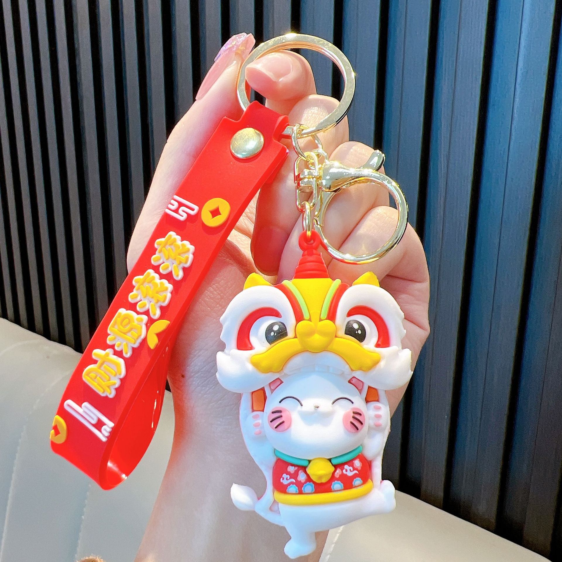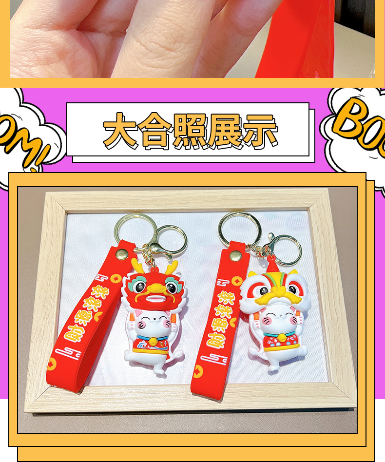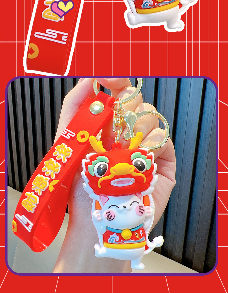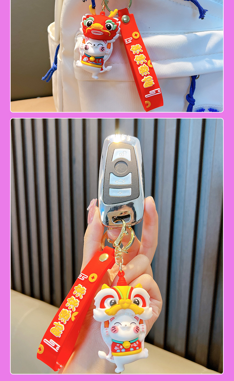 전국 패션 사자 포춘 고양이 부드러운 고무 키 체인 만화 자동차 가방 인형 펜던트 키 체인 작은 선물 도매