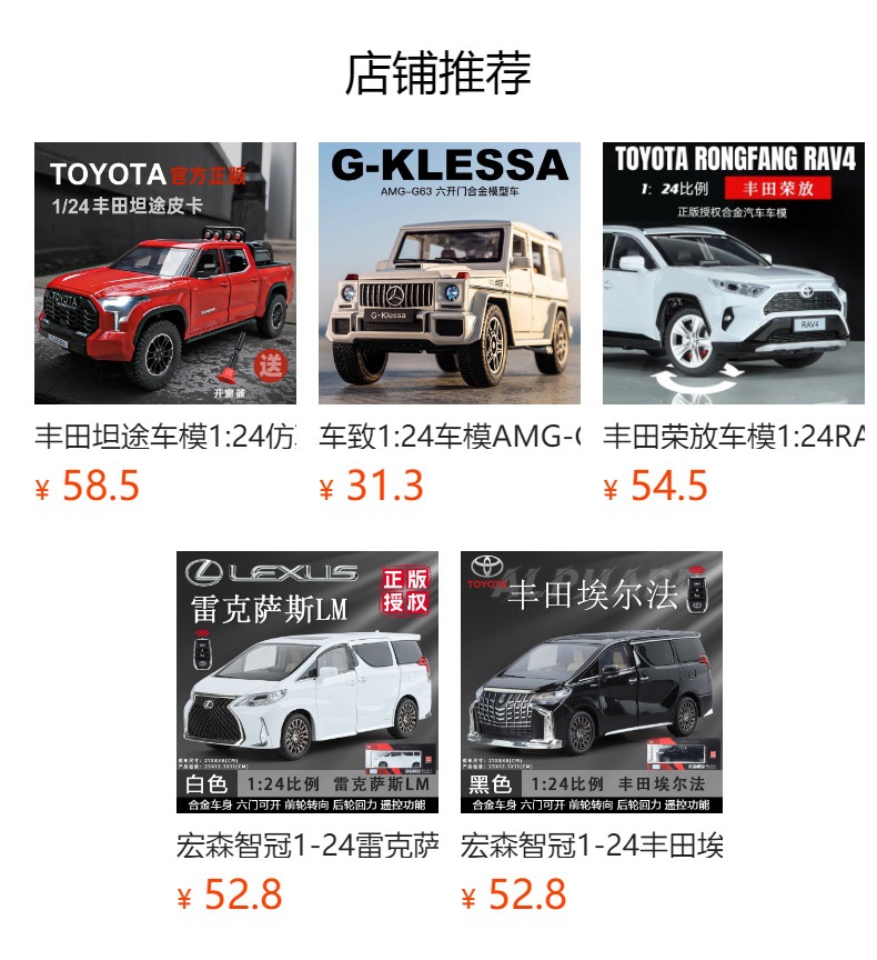 1:24 Toyota Coolidge 키 에디션 합금 자동차 모델 정품 공인 소년과 소녀 장난감 Huili 시뮬레이션 자동차스토어 가기