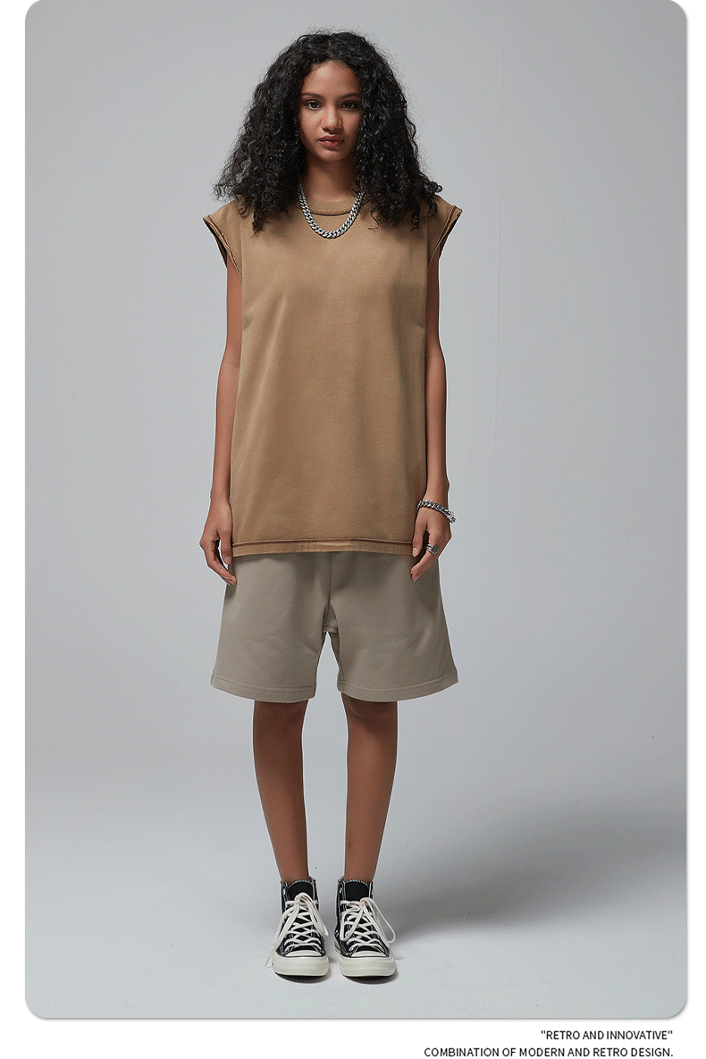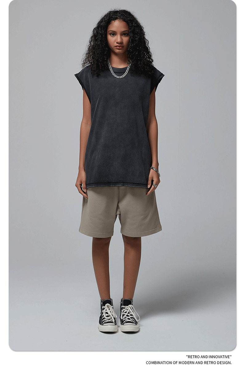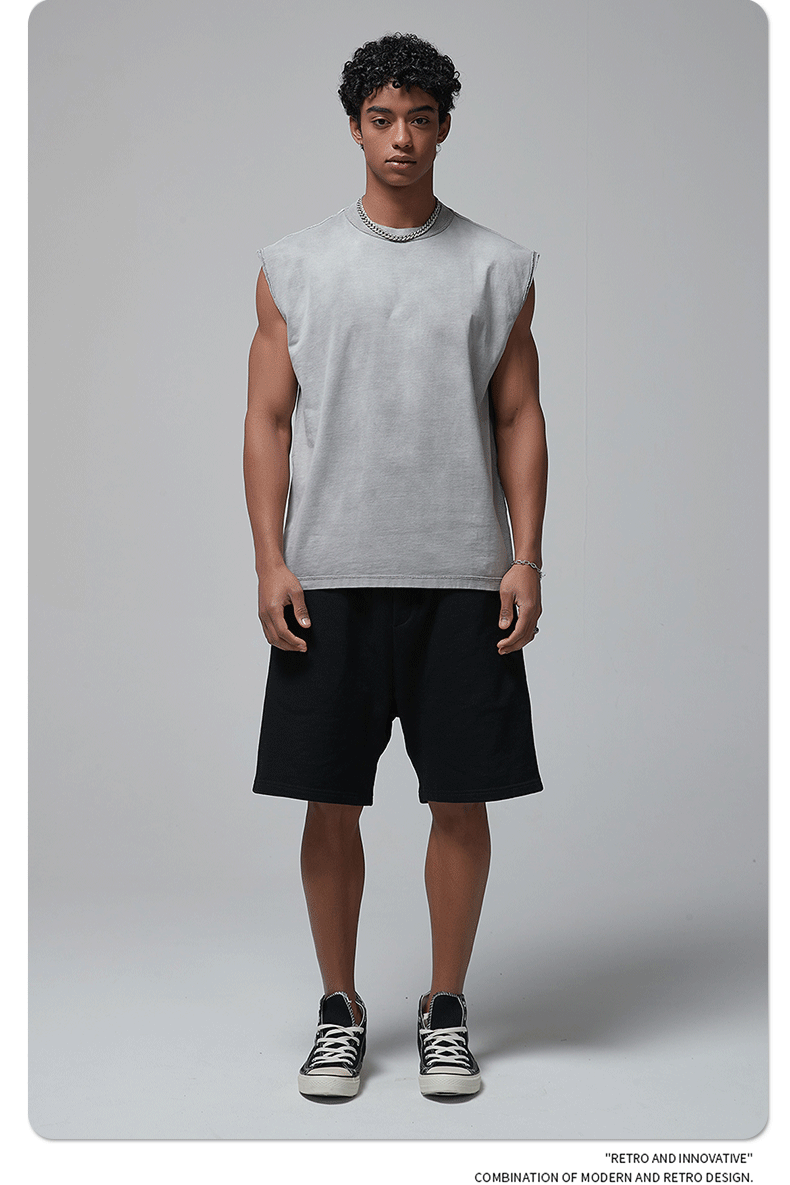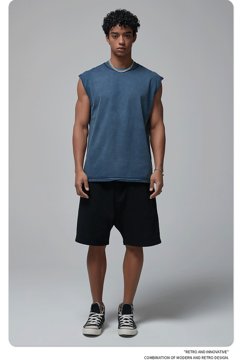 ARTIE 남성 의류 | 2025 새로운 느슨한 가장자리 바틱 오래된 씻어 양복 조끼 조끼 남자 미국 거리 패션 복고풍 반팔