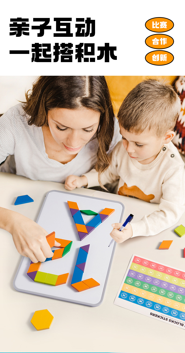 Milu 어린이 Tangram 자기 기하학 빌딩 블록 지적 퍼즐 퍼즐 유치원 장난감 초등 학생 교육 보조 3+