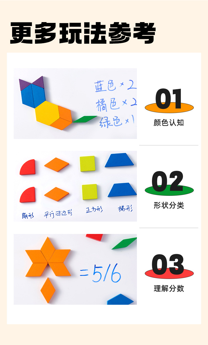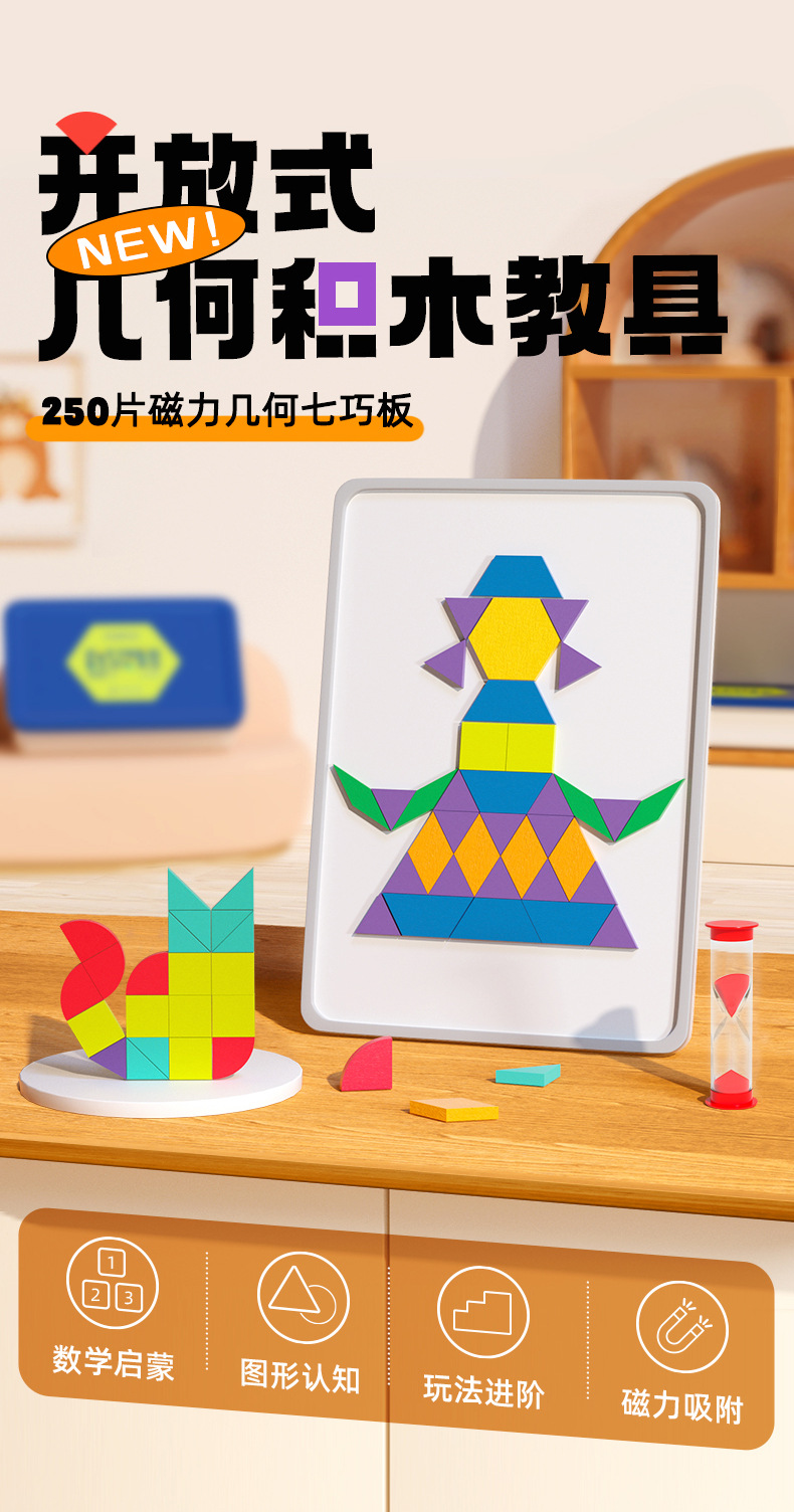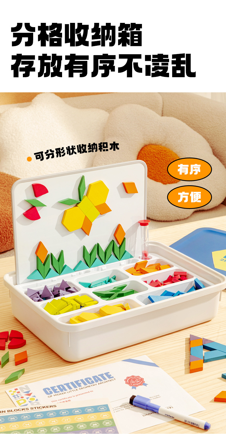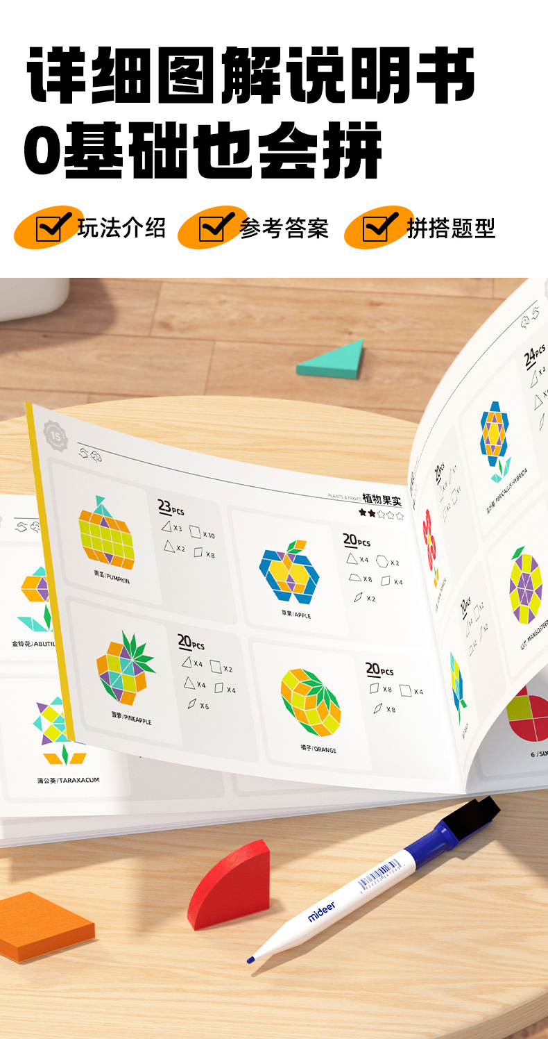 Milu 어린이 Tangram 자기 기하학 빌딩 블록 지적 퍼즐 퍼즐 유치원 장난감 초등 학생 교육 보조 3+스토어 가기