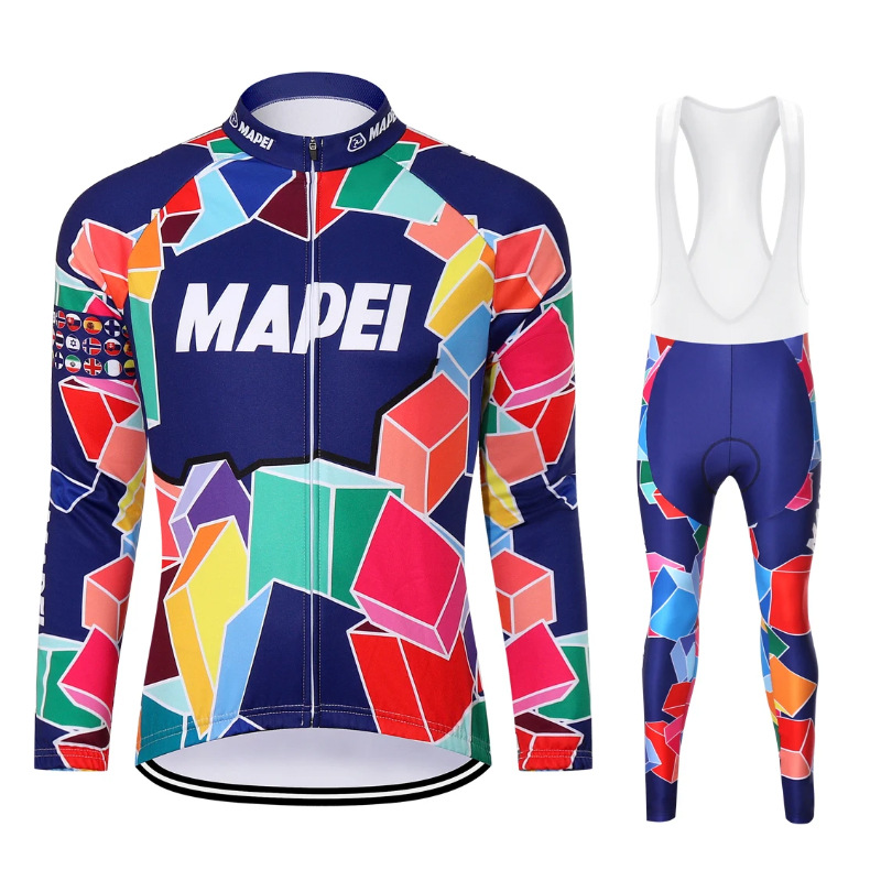 새로운 국경 간 MAPEI 겨울로드 자전거 자전거 자전거 자전거 기모 긴 소매 양털 세트 서스펜더 바지