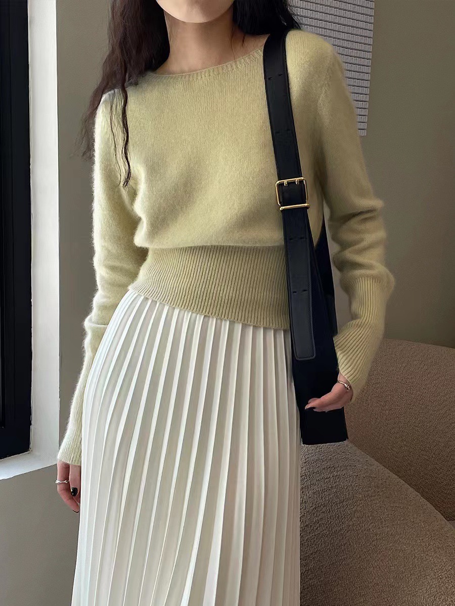 여성의 높은 허리 오프 넥 스웨터 짧은 가을과 겨울 부드러운 하이 엔드 허리 타이트 캐시미어 니트 바닥 스웨터