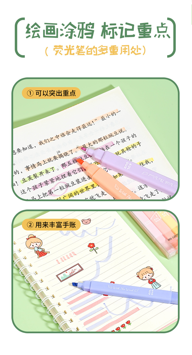 만화 눈 보호 형광등 학생 마크 분류 마커 학습 사무소는 Morandi 가벼운 양두 펜 공급스토어 가기