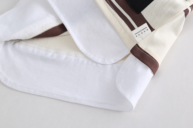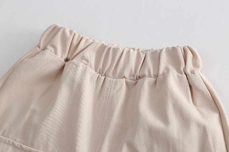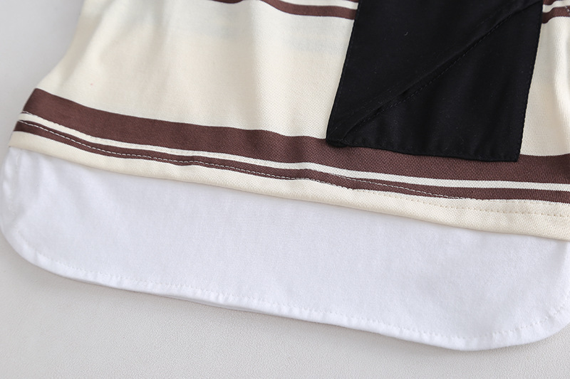 • Yt 넓은 스트라이프 포켓 짧은 소매 세트 베이지