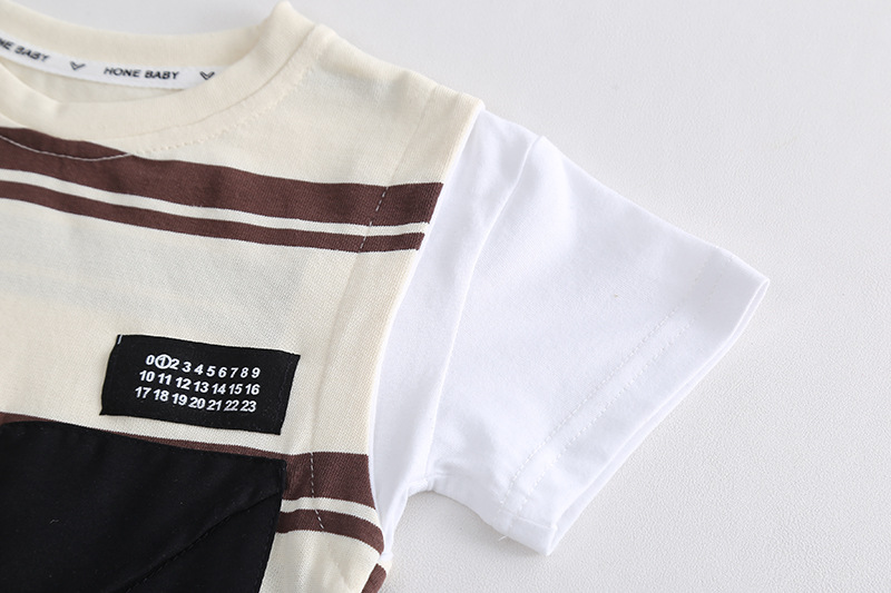 여름 2024 새로운 와이드 스트라이프 포켓 아동복 남학생 투피스 짧은 소매 반바지 여름 옷 어린이 세트스토어 가기