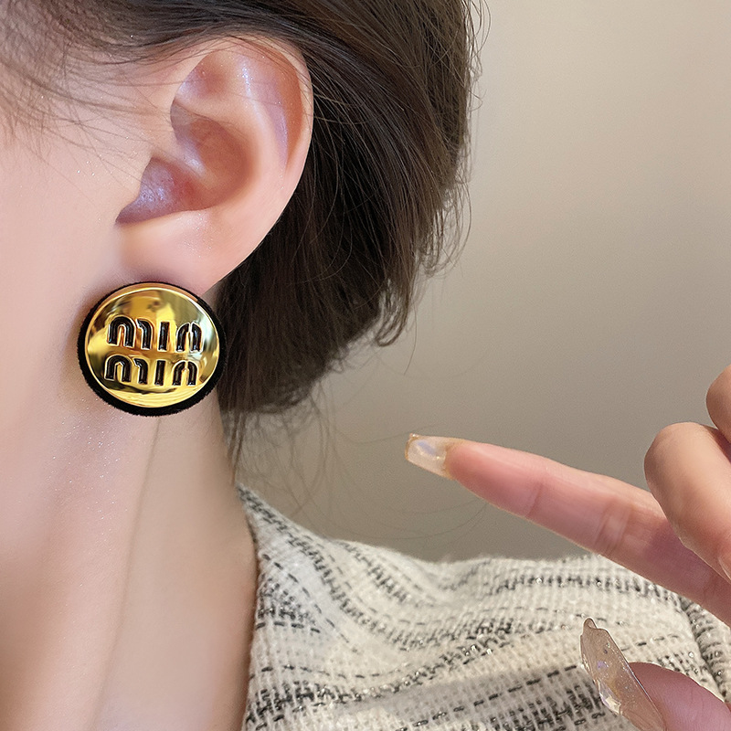 홍콩 스타일 벨벳 편지 스터드 귀걸이 틈새 디자인 하이 센스 귀걸이 2023 여성을위한 새로운 인기 가을과 겨울 맞춤형 귀걸이