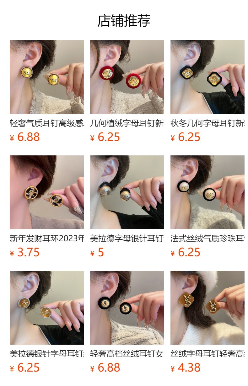 홍콩 스타일 벨벳 편지 스터드 귀걸이 틈새 디자인 하이 센스 귀걸이 2023 여성을위한 새로운 인기 가을과 겨울 맞춤형 귀걸이스토어 가기