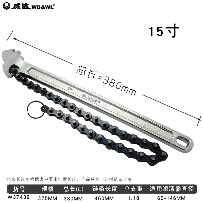 Weida 오일 필터 요소 체인 렌치 오일 그리드 분해 렌치 필터 제거 체인 펜치 오일 교환 도구