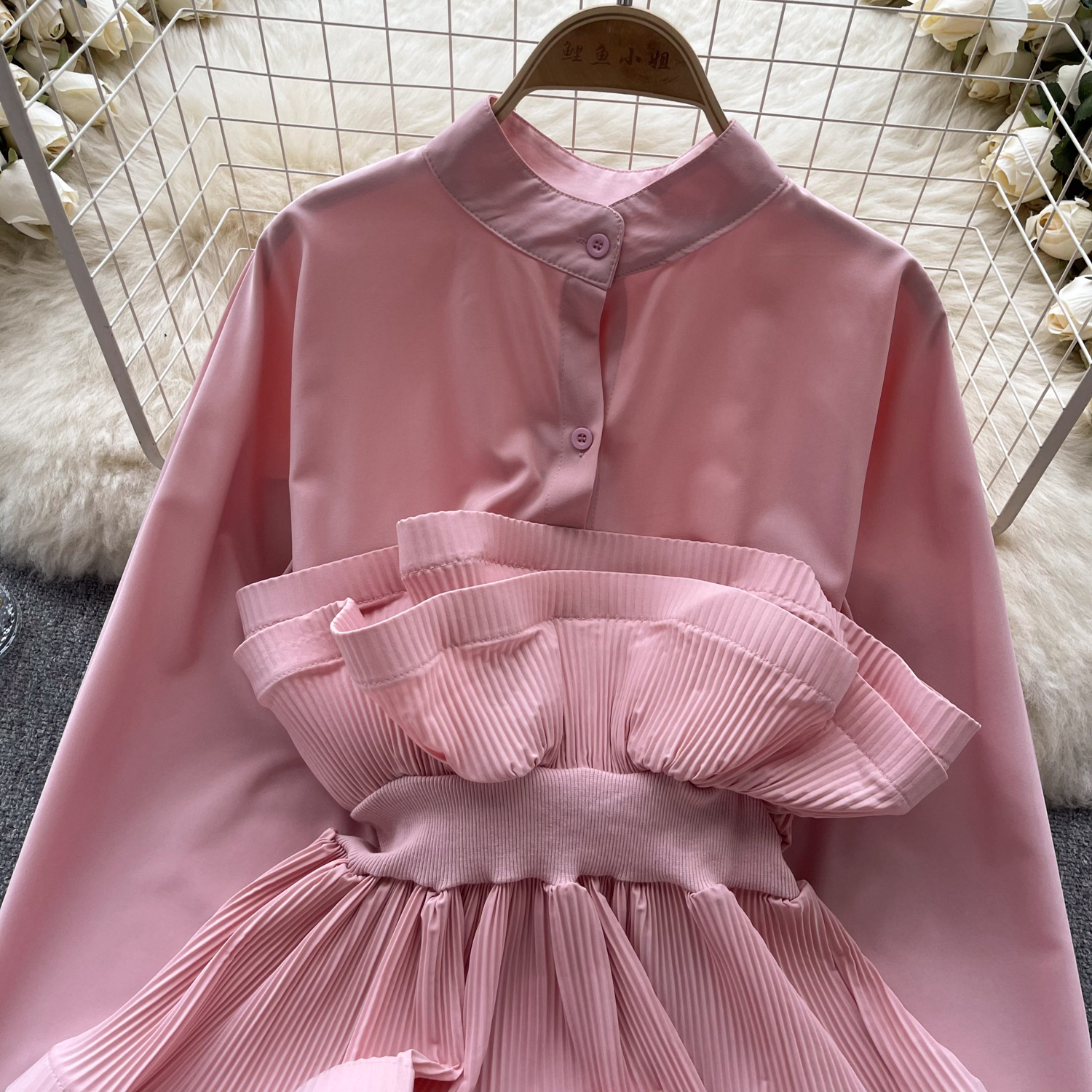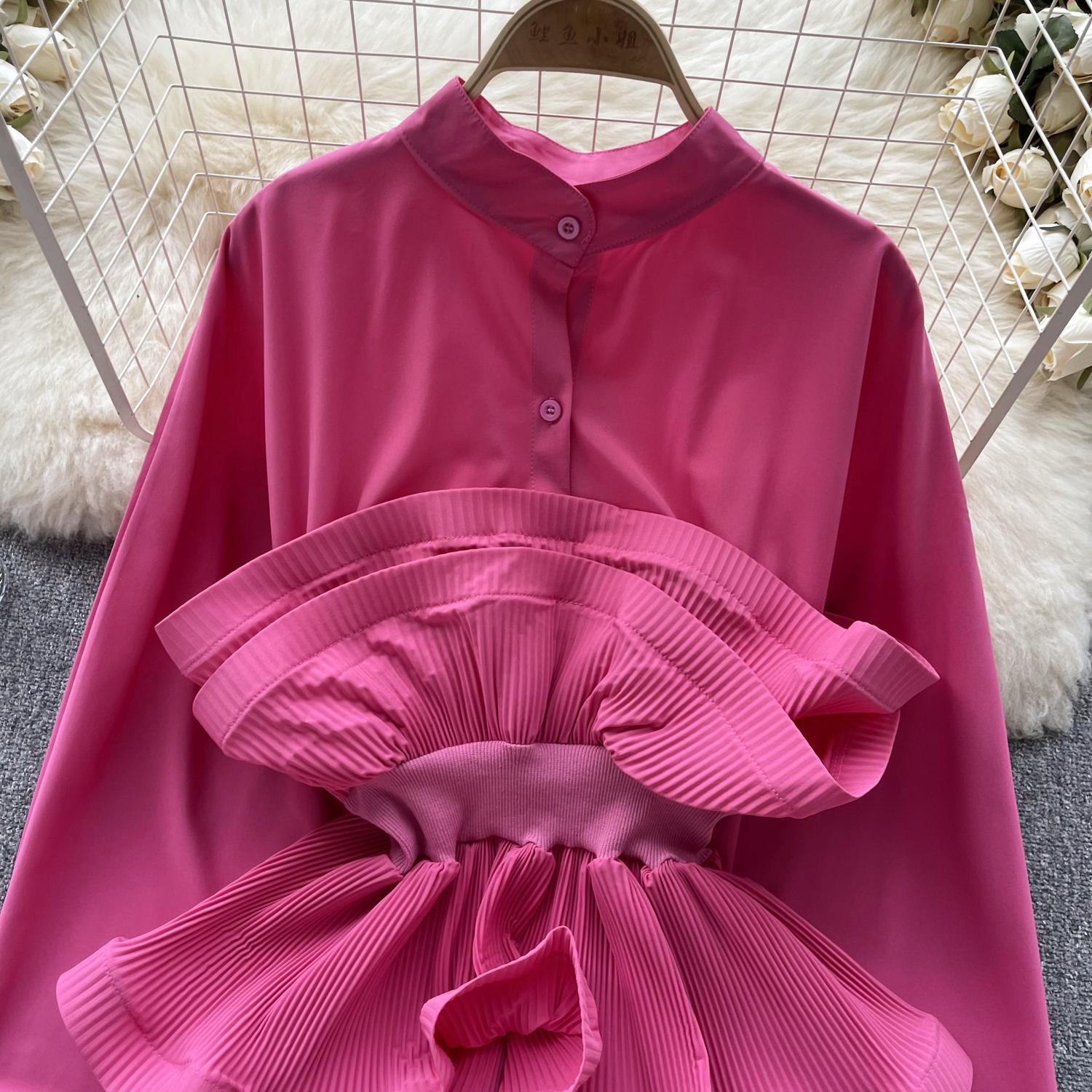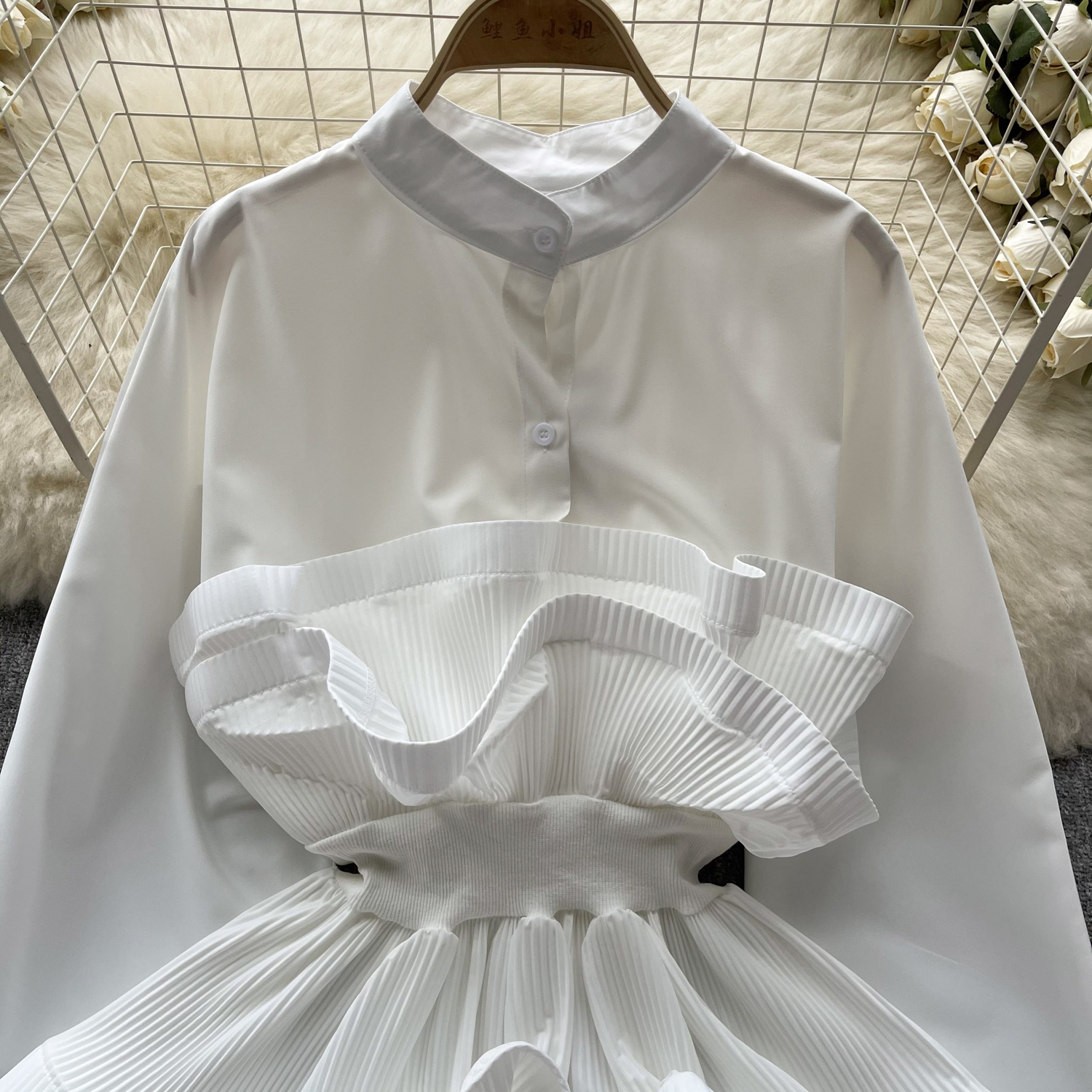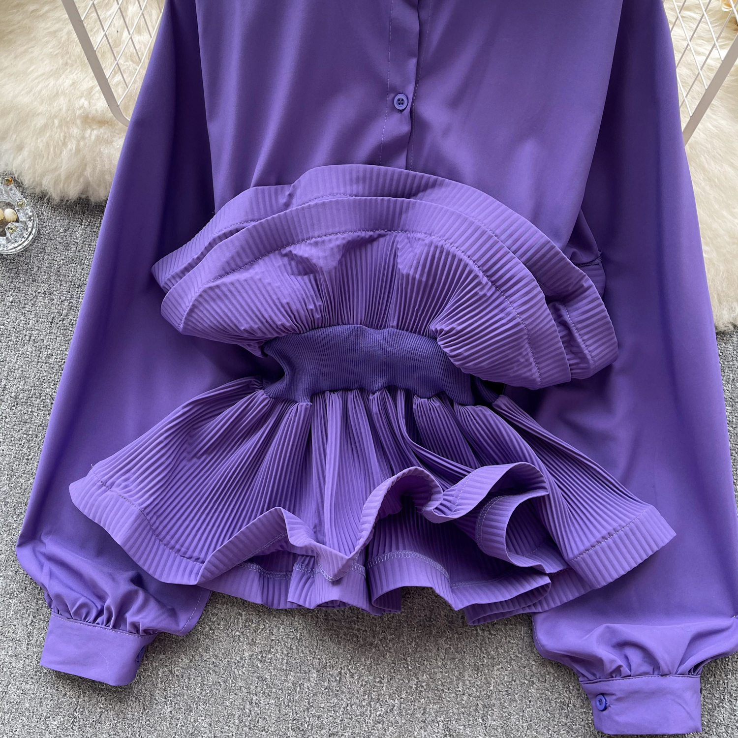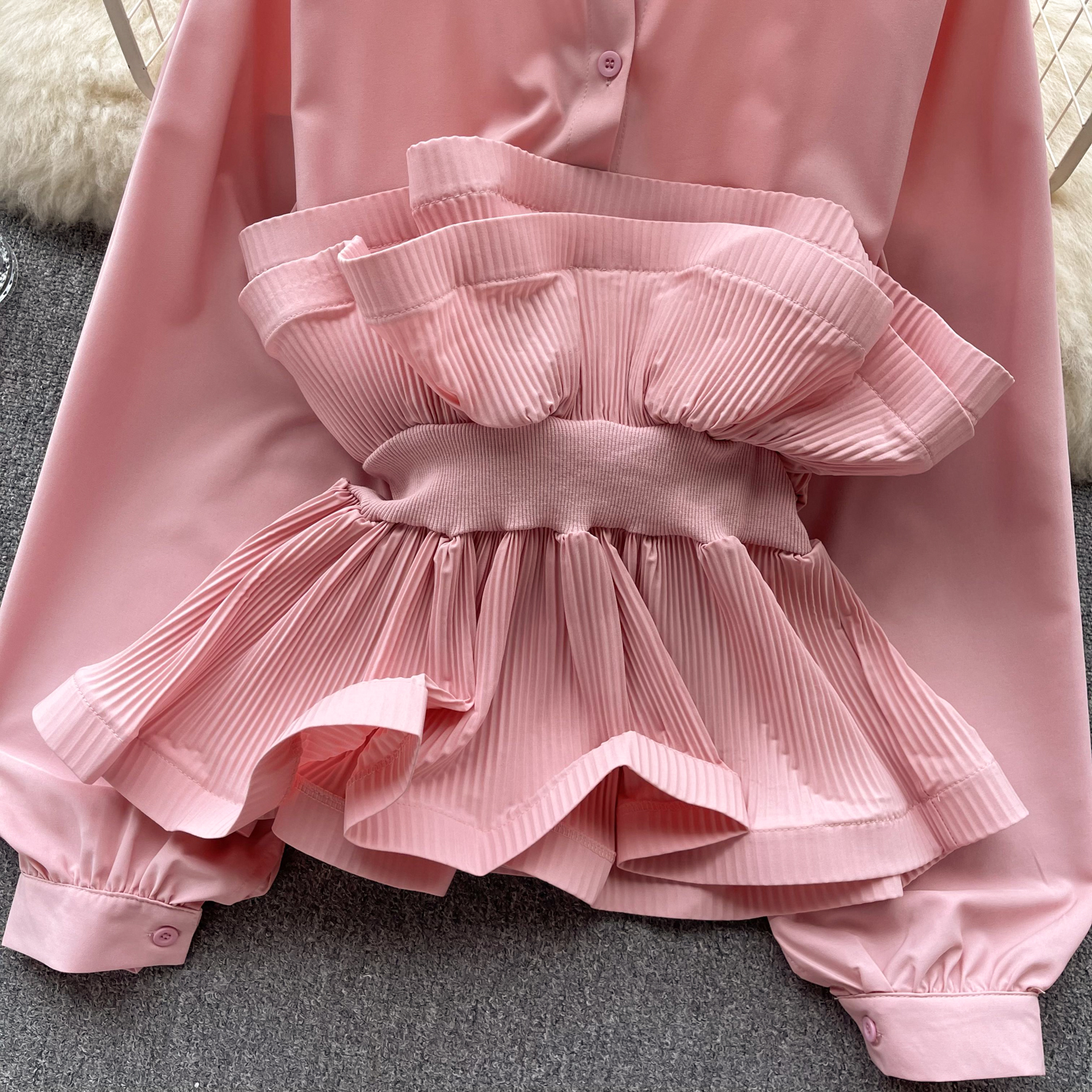 프랑스 스타일 가벼운 럭셔리 사교계 스타일 퍼프 소매 셔츠 여성의 가을 타이트 허리 주름진 디자인 틈새 슈퍼 요정 탑스토어 가기