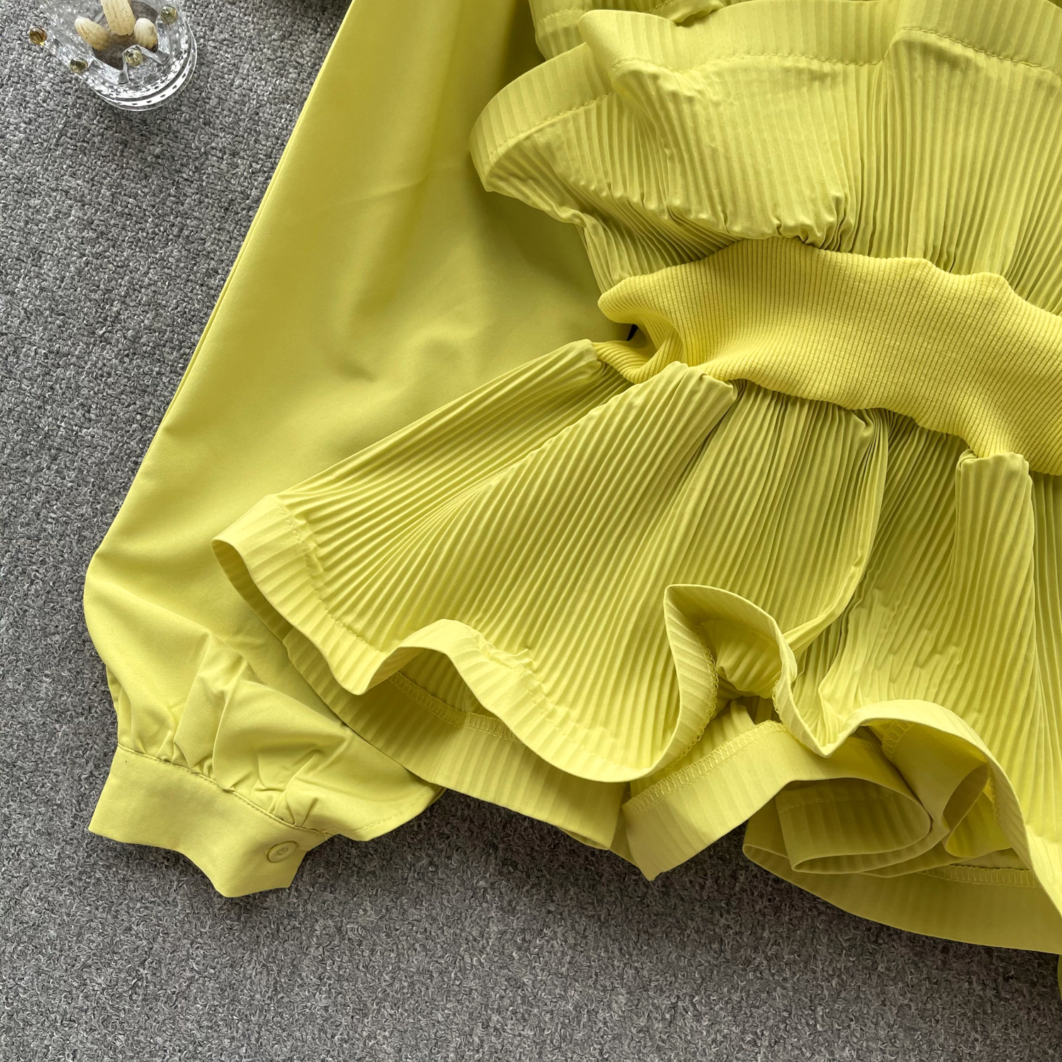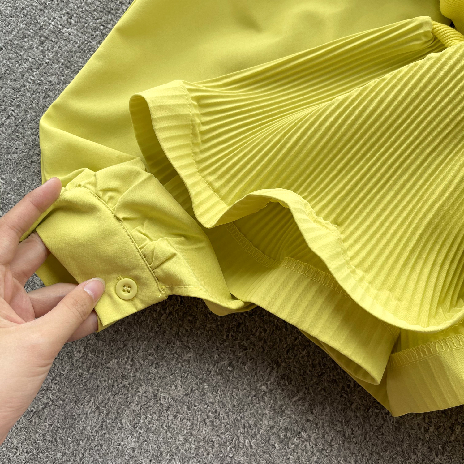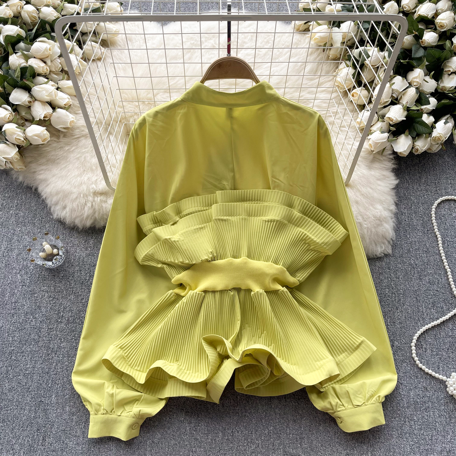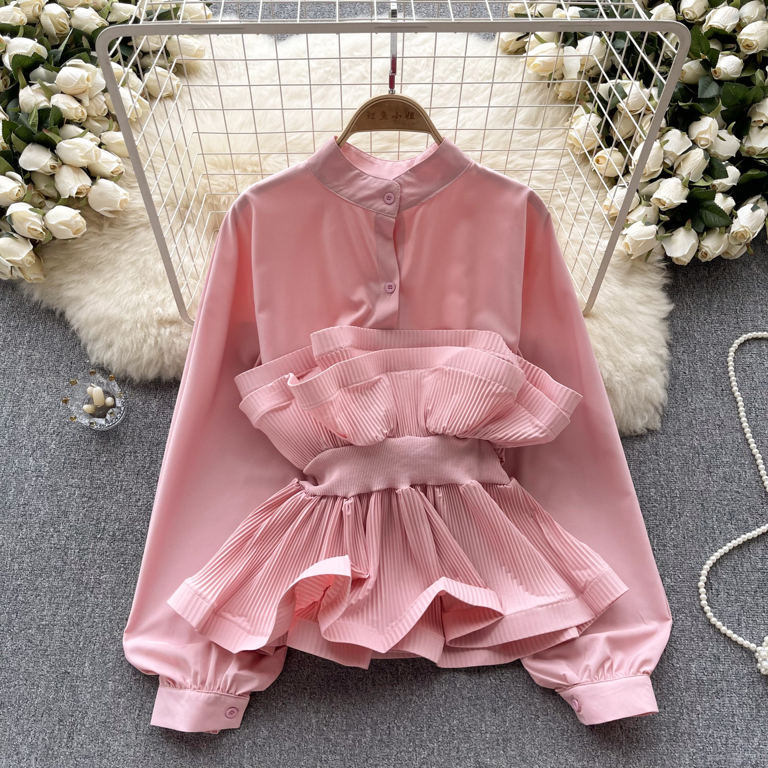 프랑스 스타일 가벼운 럭셔리 사교계 스타일 퍼프 소매 셔츠 여성의 가을 타이트 허리 주름진 디자인 틈새 슈퍼 요정 탑