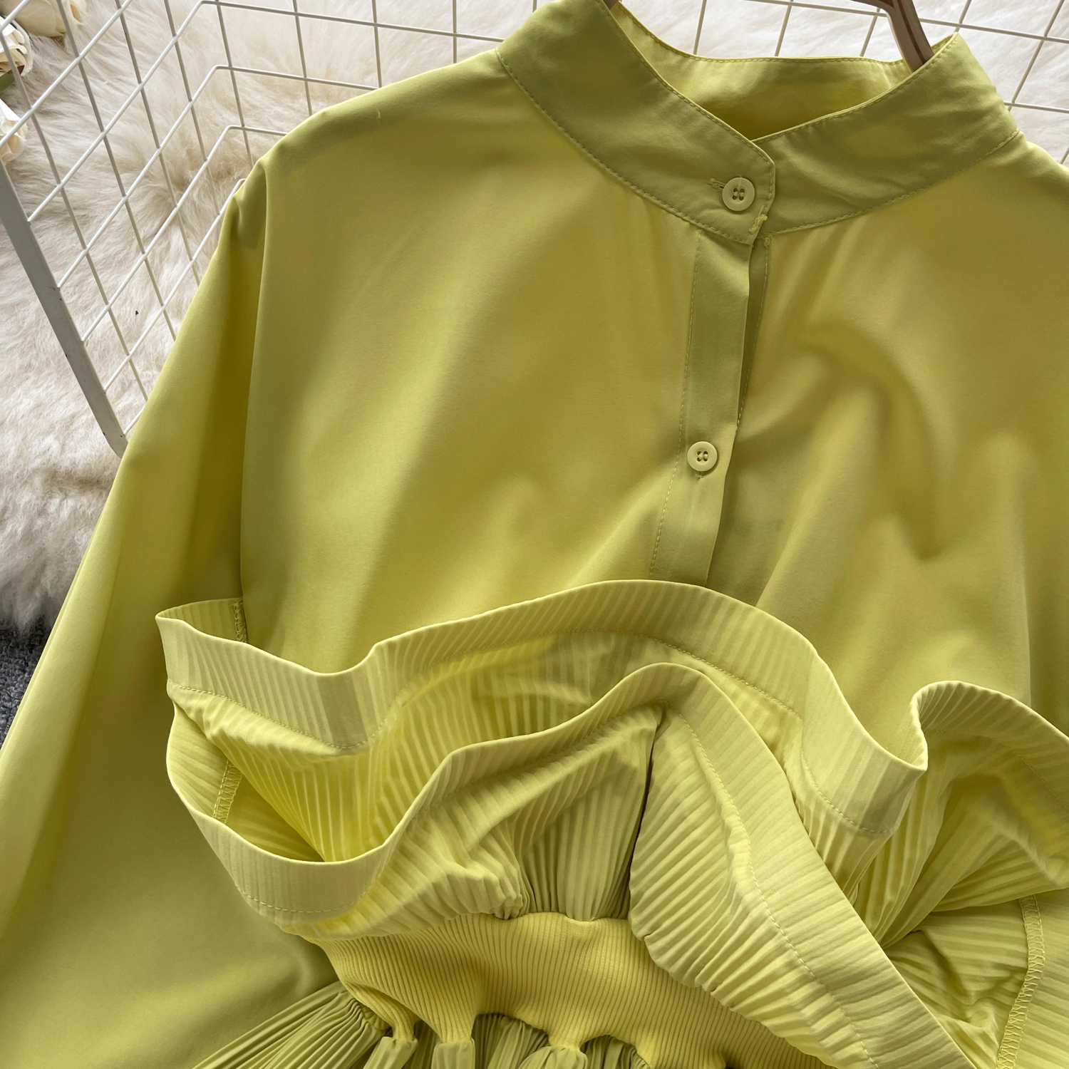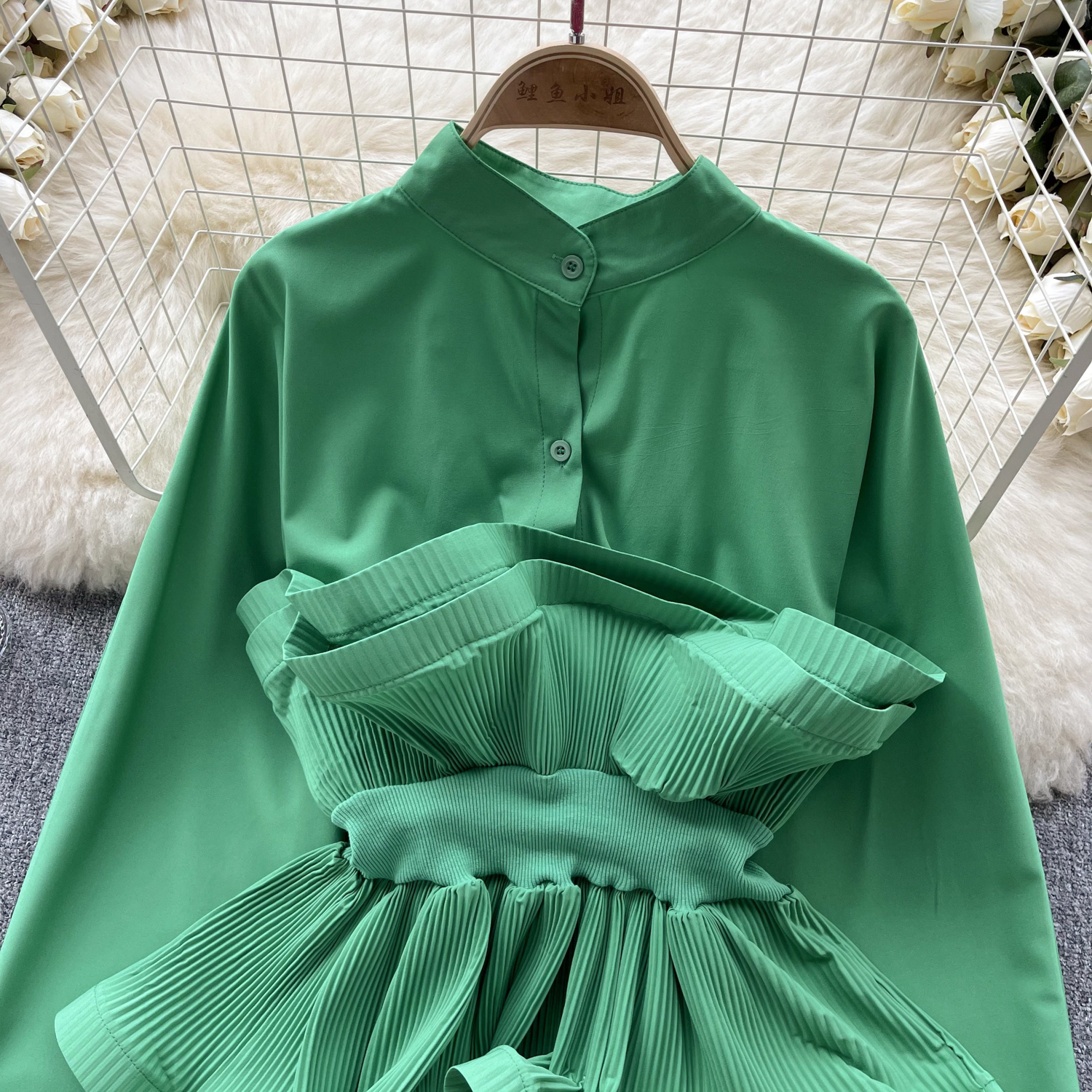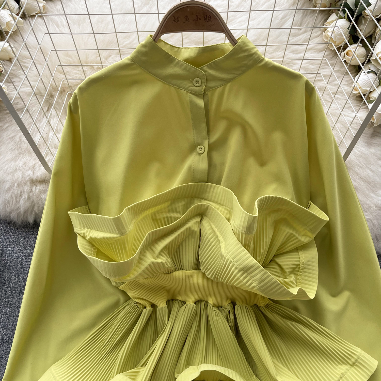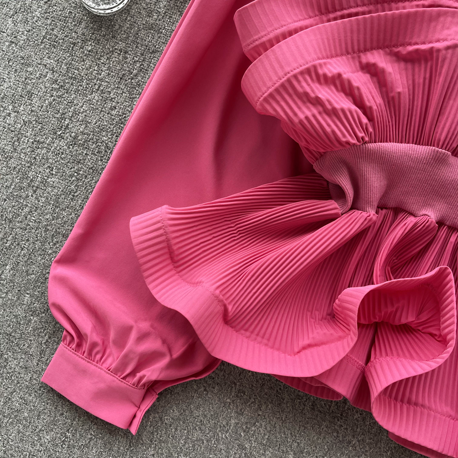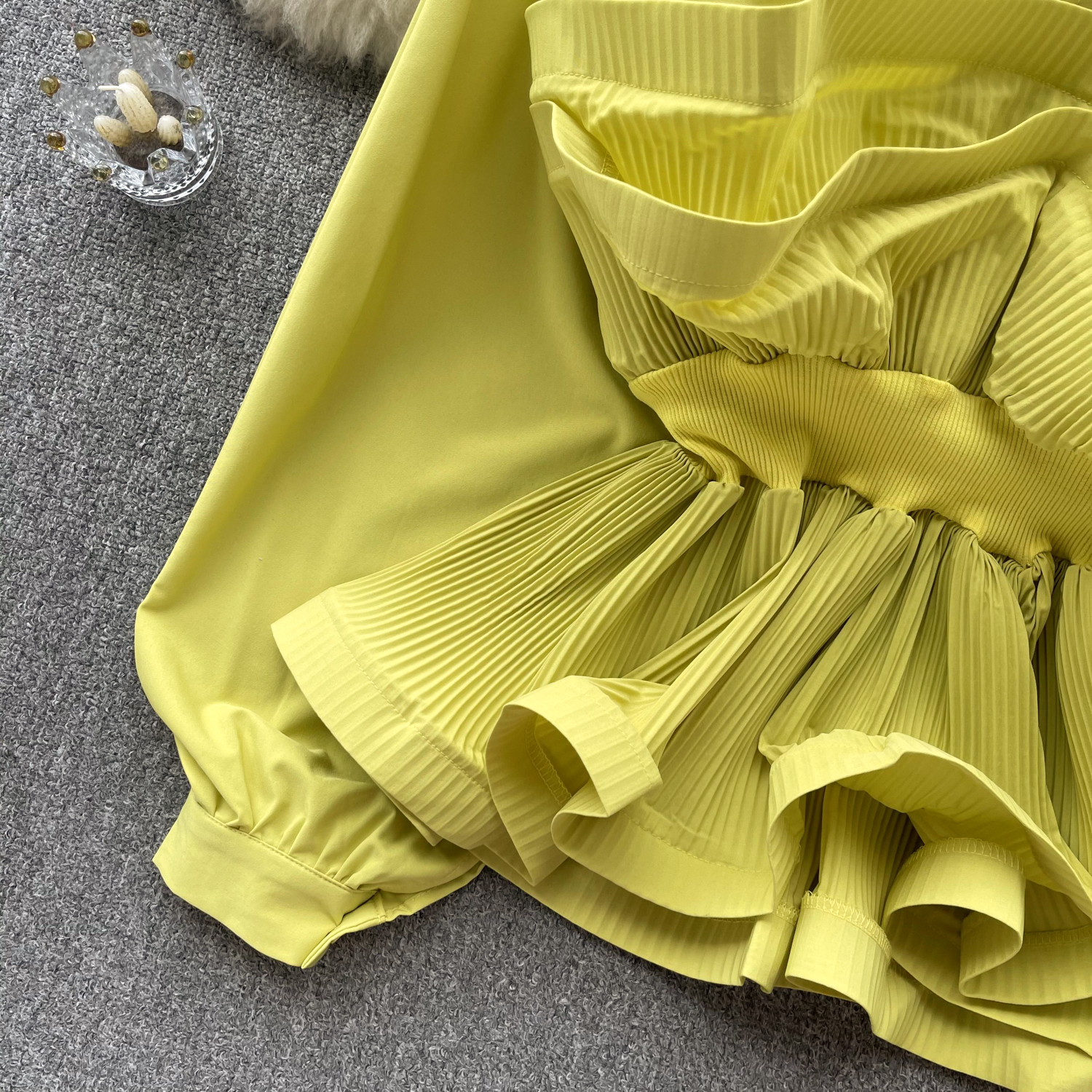 프랑스 스타일 가벼운 럭셔리 사교계 스타일 퍼프 소매 셔츠 여성의 가을 타이트 허리 주름진 디자인 틈새 슈퍼 요정 탑