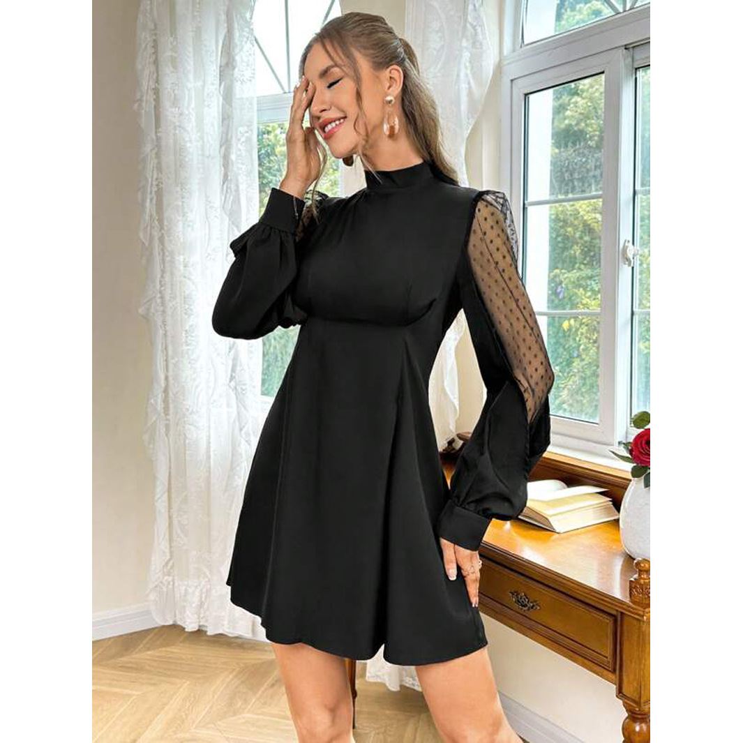 2023 아마존 AliExpress 새해 폴카 도트 메쉬 시스루 랜턴 슬리브 허리 타이트 여성 원피스 패션 우수