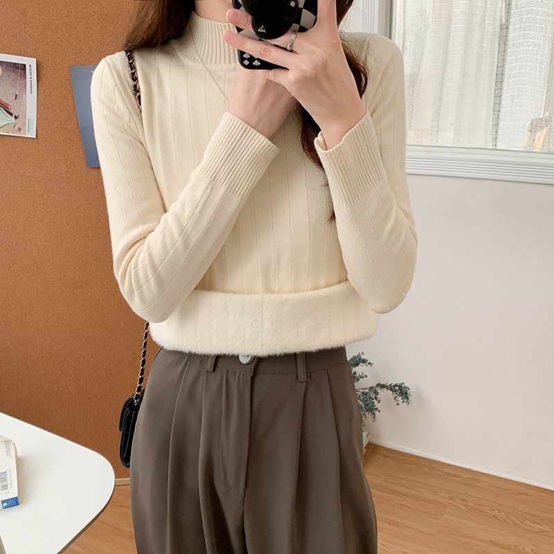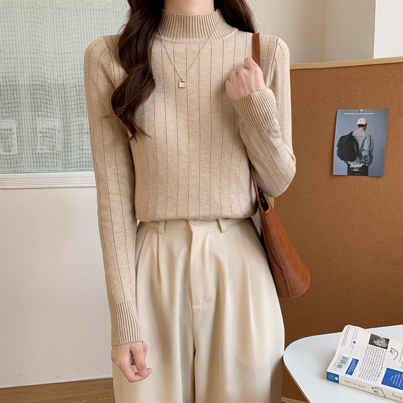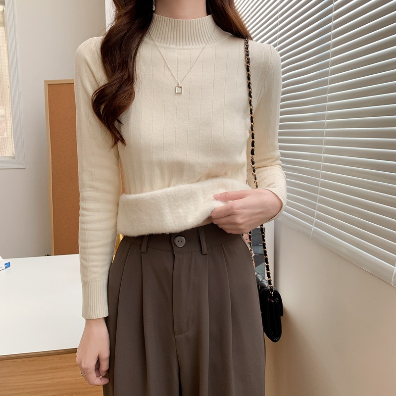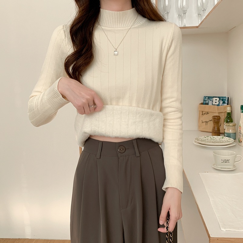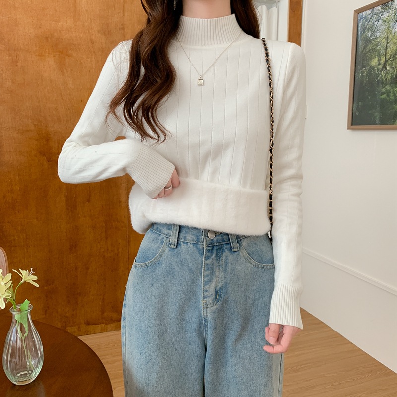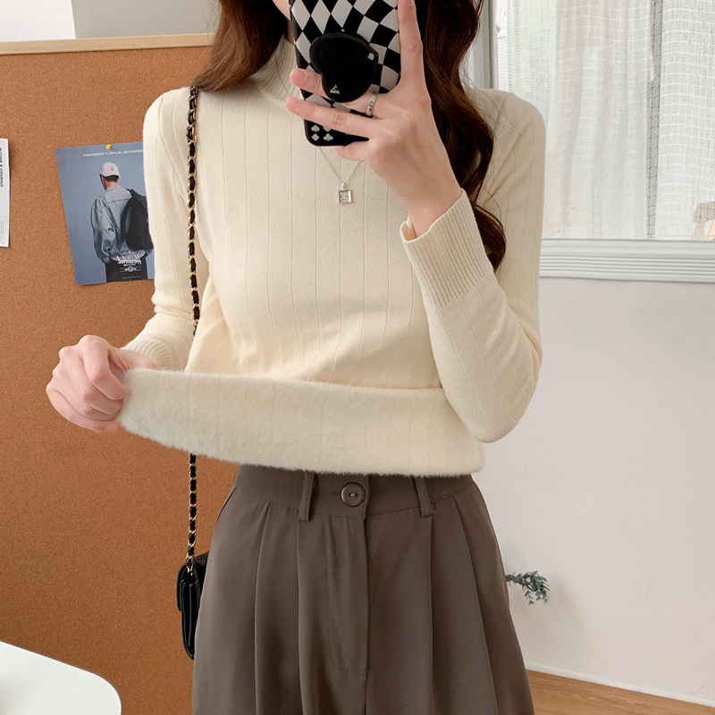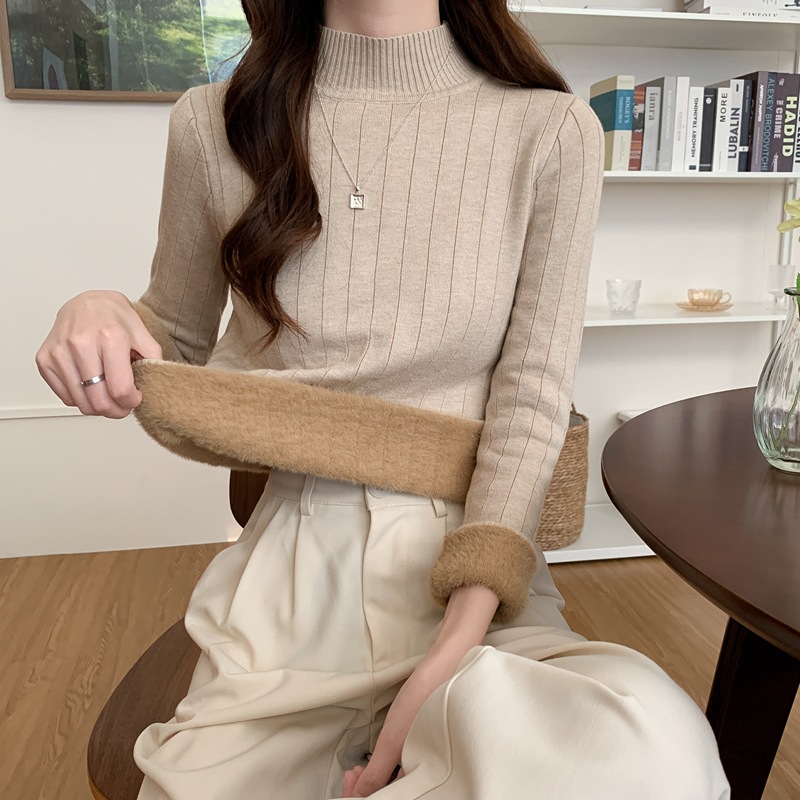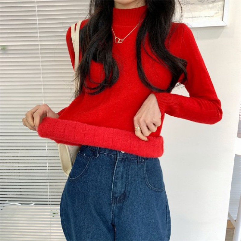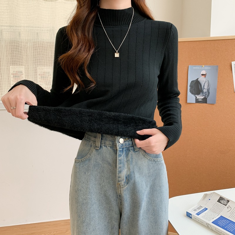 가을과 겨울 2023 새로운 기모 두꺼운 따뜻한 내부 스웨터 여성의 하프 터틀넥 원피스 벨벳 바닥 스웨터 탑