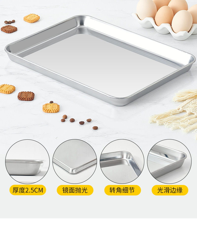 304 스테인레스 스틸 평평한 바닥 사각형 접시 식품 등급 직사각형 트레이 티라미수 케이크 베이킹 사각형 접시