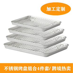 304 스테인레스 스틸 평평한 바닥 사각형 접시 식품 등급 직사각형 트레이 티라미수 케이크 베이킹 사각형 접시스토어 가기