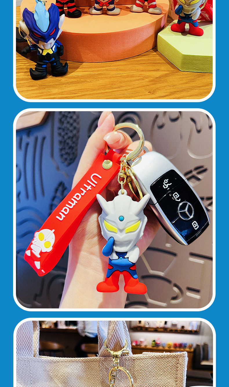 만화 창조적 인 울트라 맨 자동차 키 체인 절묘한 귀여운 인형 학생 학교 가방 펜던트 키 체인 작은 선물스토어 가기