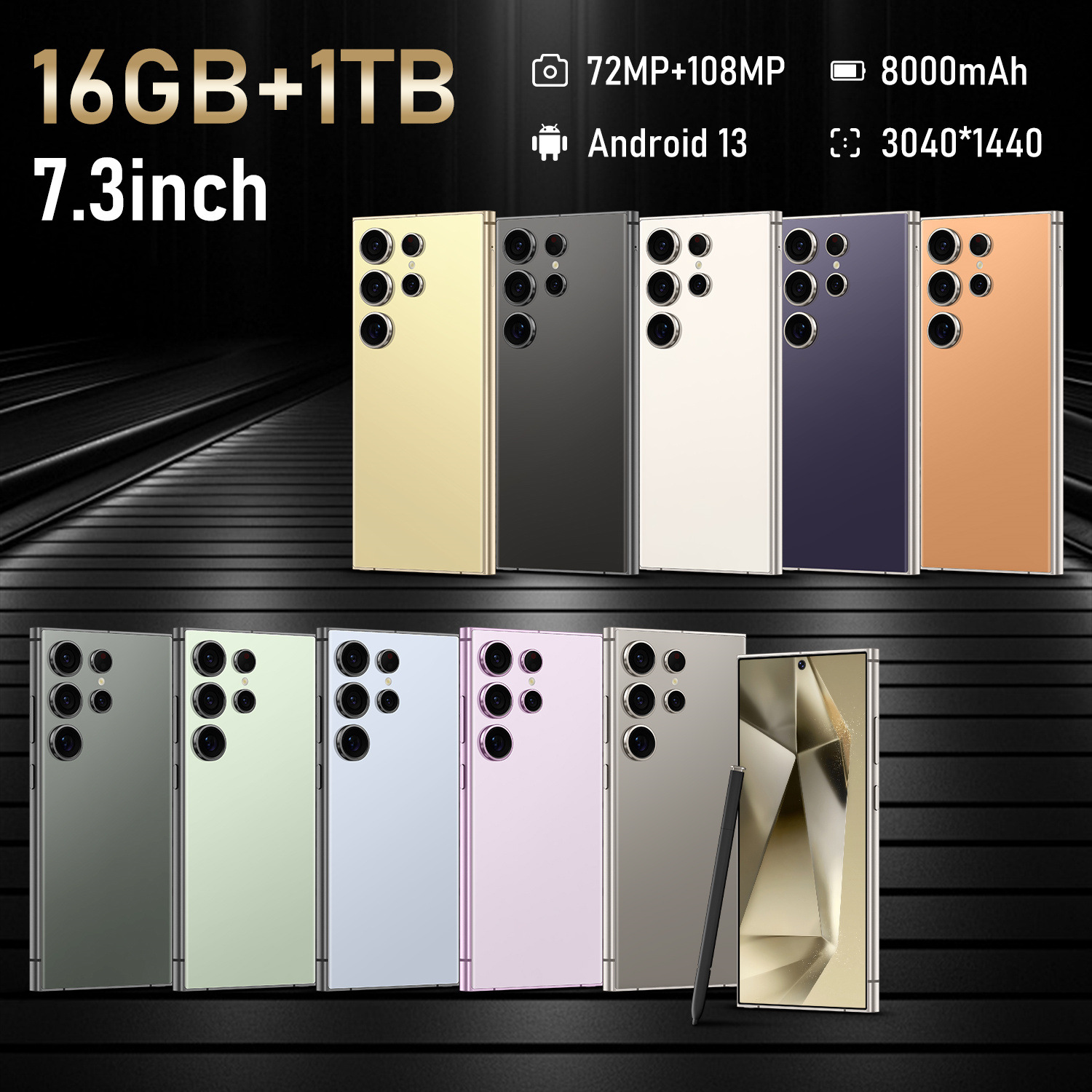 2024 새로운 S24 울트라 7.3 인치 국경 3 64G 지원 빠른 충전 안드로이드 스마트 폰 도매