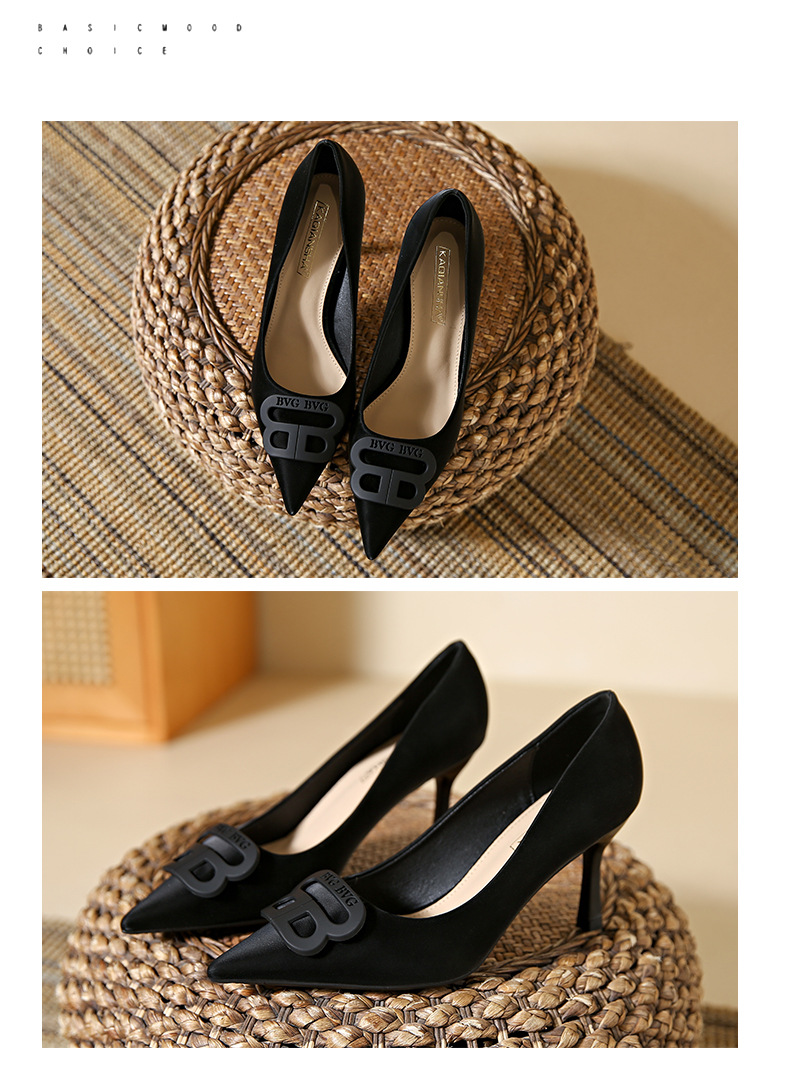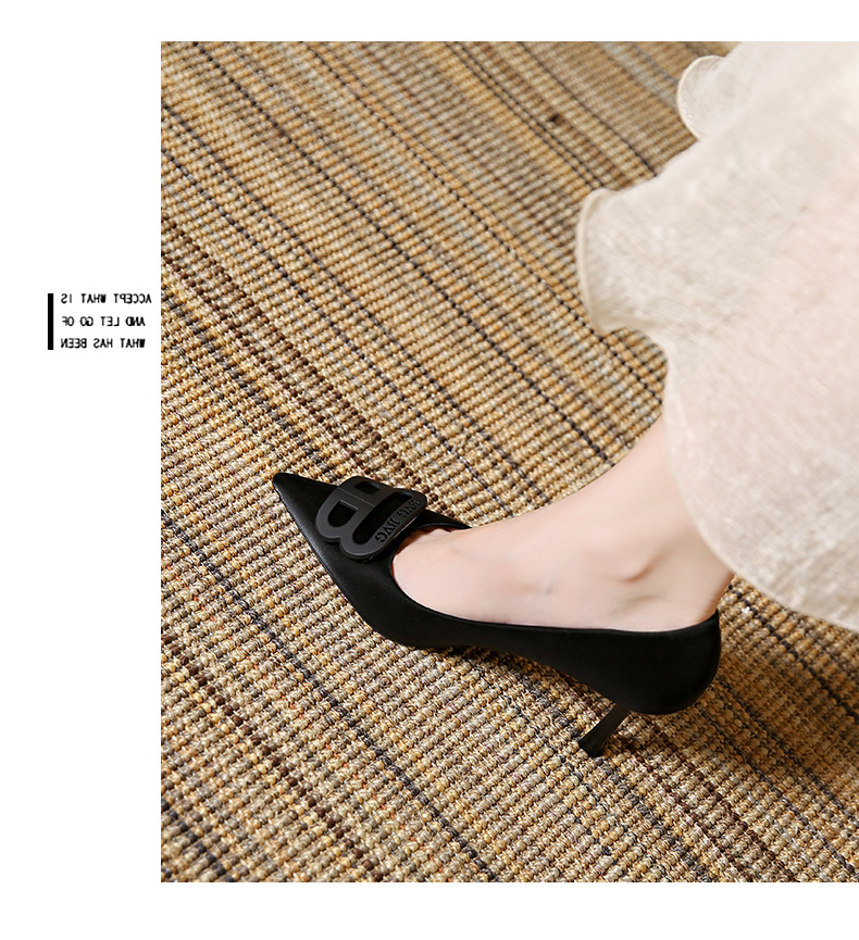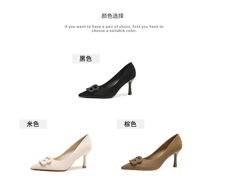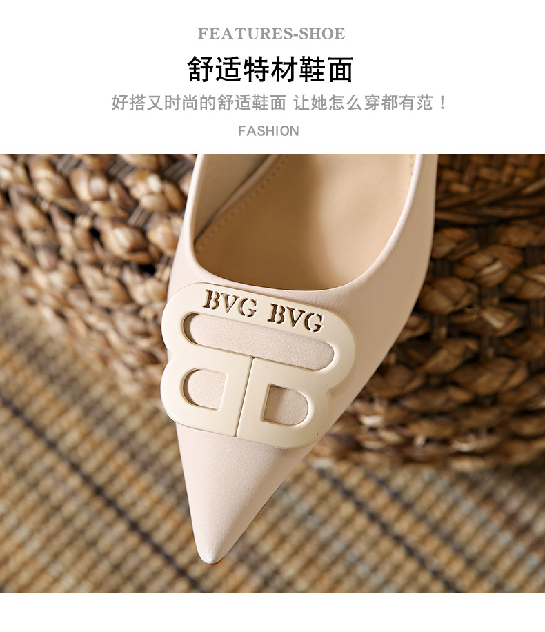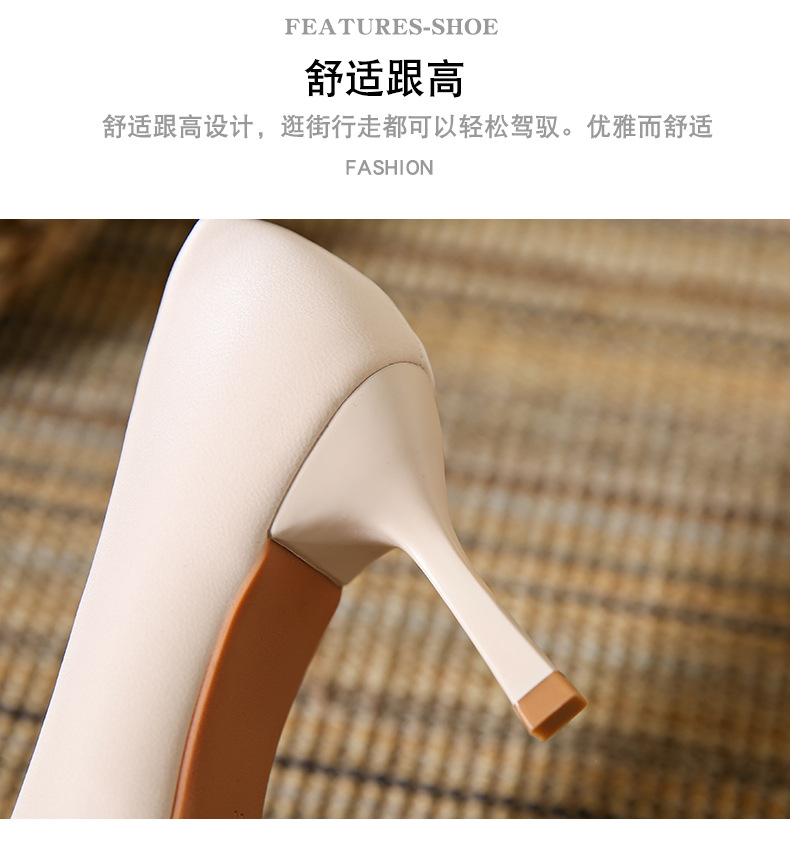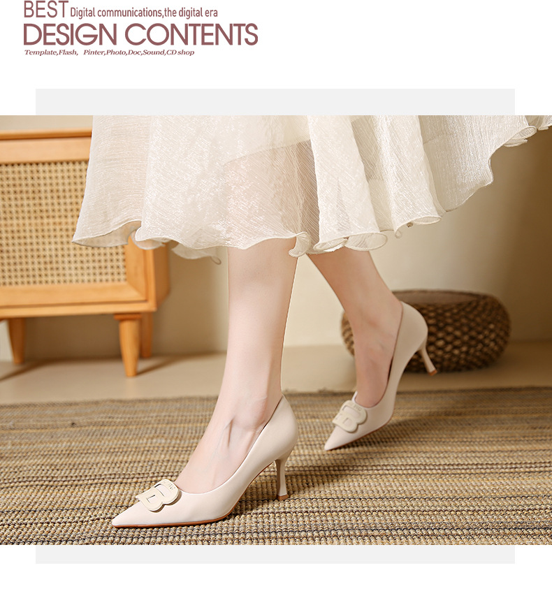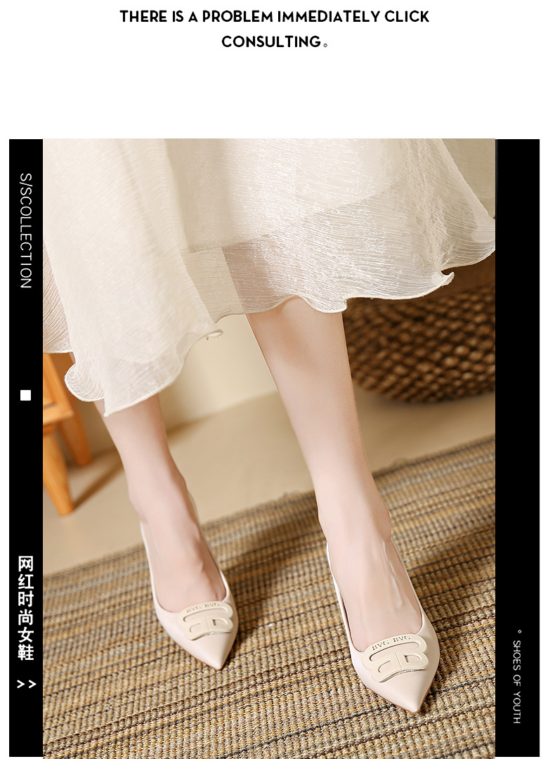프렌치 누드 컬러 천연 가죽 메탈 버클 얇은 굽 하이힐 2025년 신상 부드러운 가죽 출퇴근용 여성용 하이힐스토어 가기