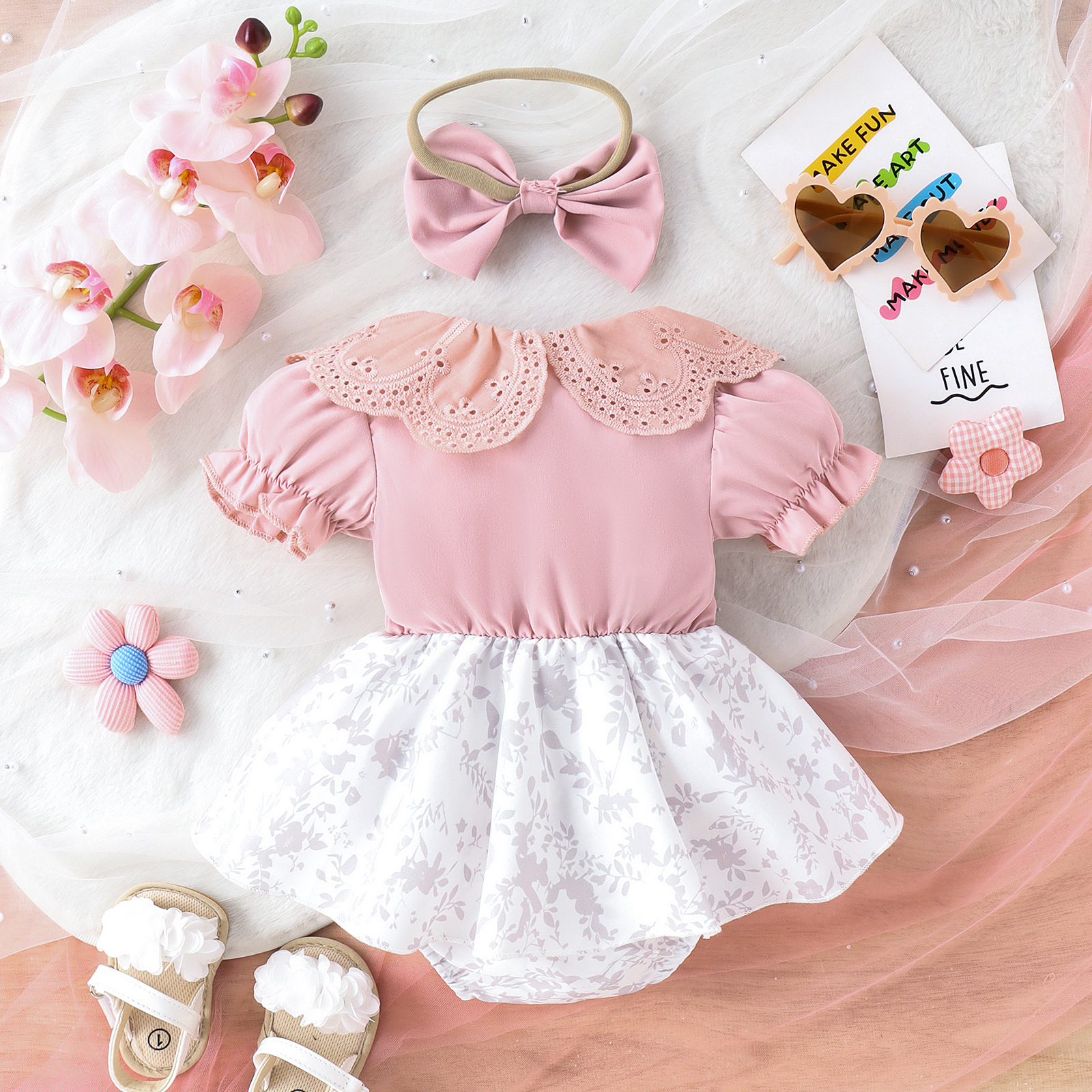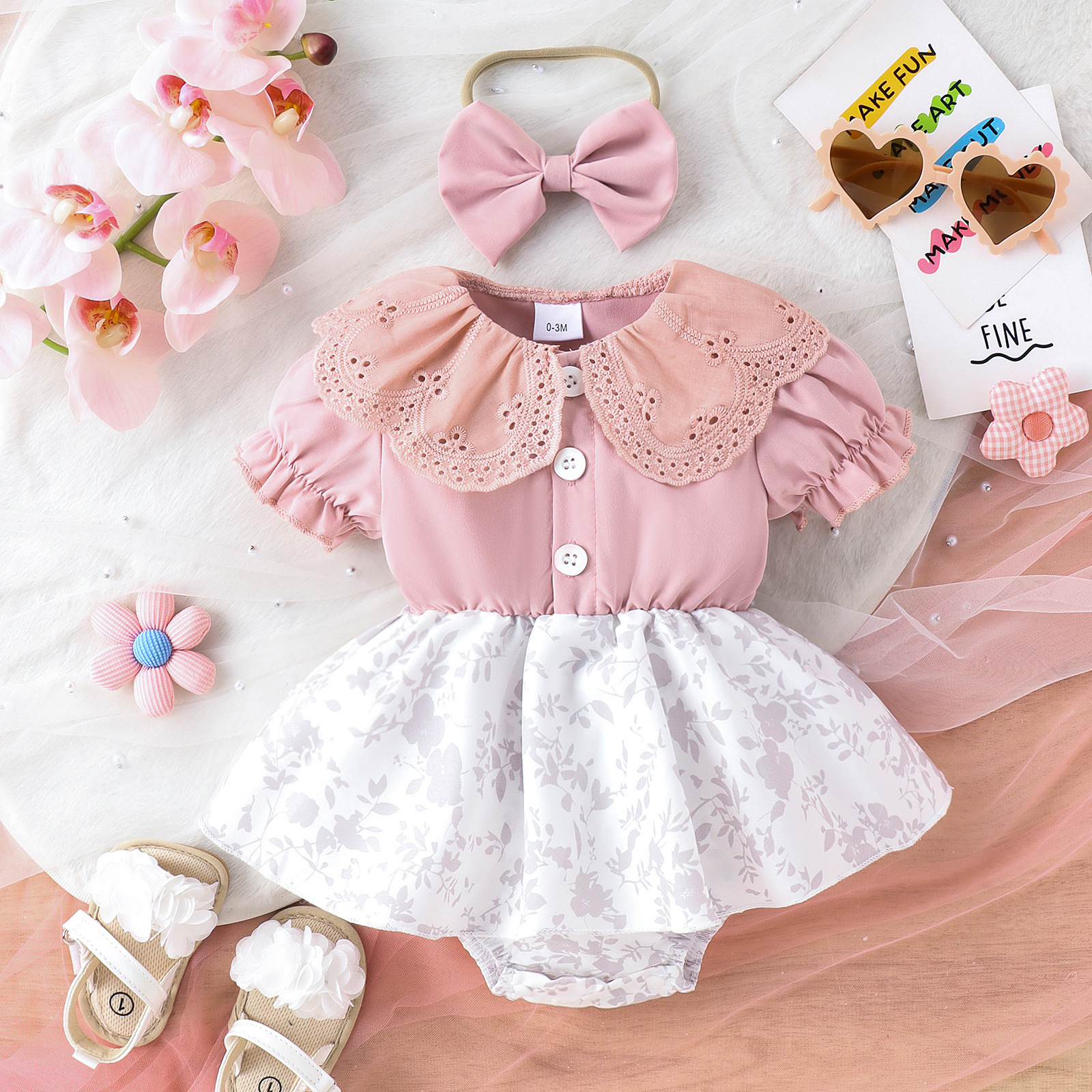 바옥신 아동복 국경 새 여름 아기 한국 스타일 인형 칼라 모자 프린트 치마 헤드웨어 세트