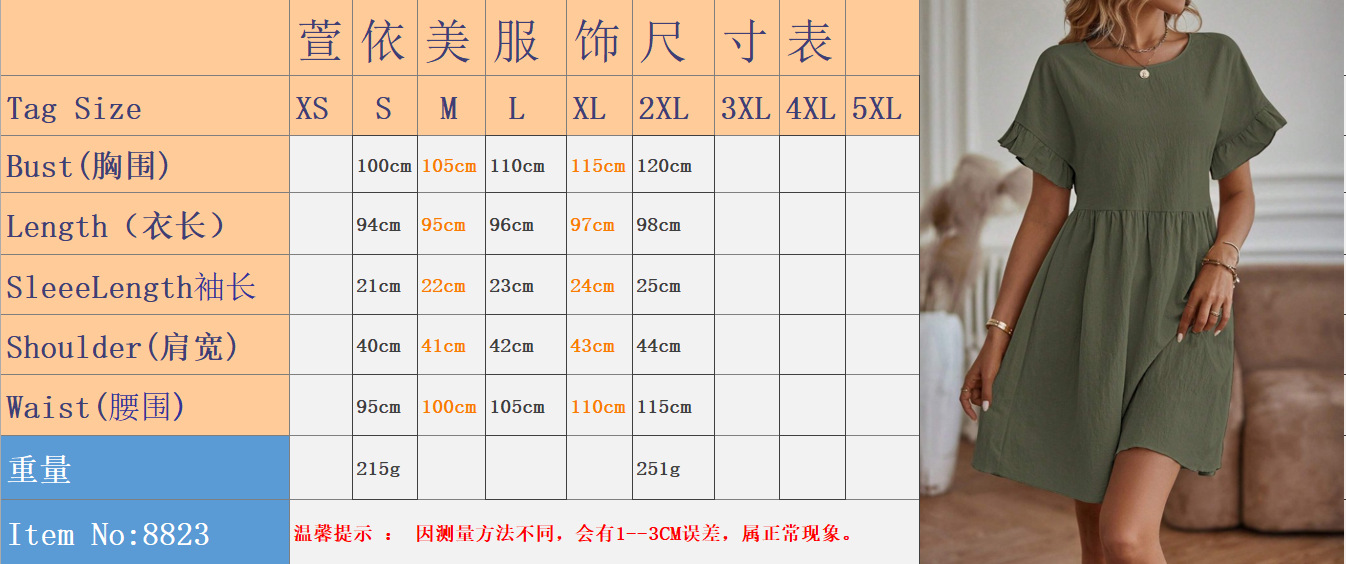 2025 아마존 유럽과 미국의 국경 여성 의류 대외 무역 독립 스테이션 새로운 기질 라운드 넥 느슨한 코튼과 린넨 드레스 여성