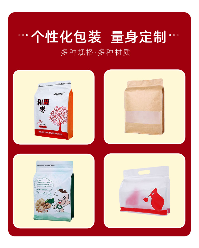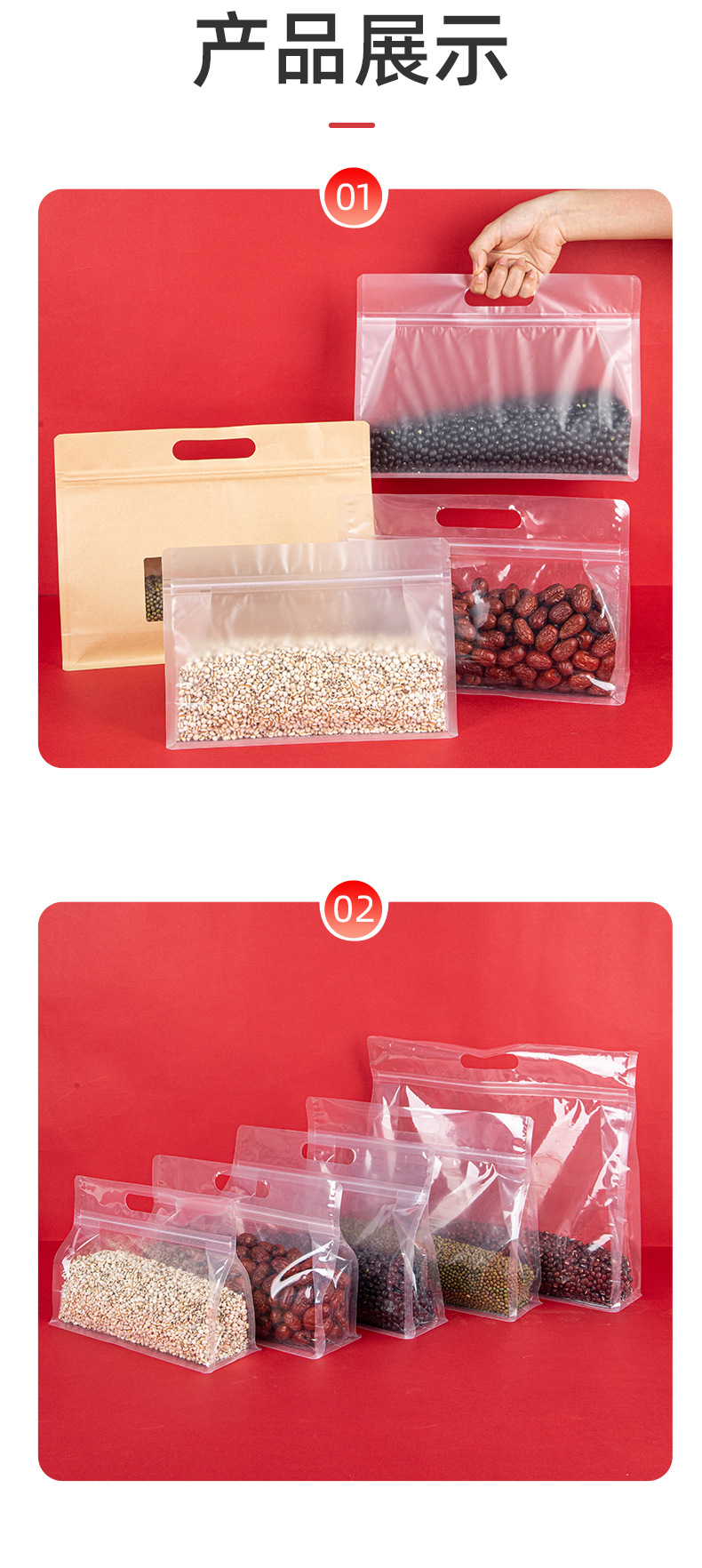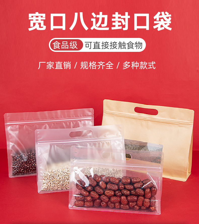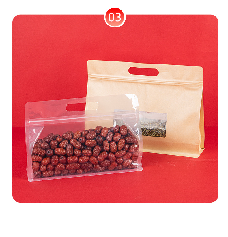 식품 봉인 된 가방 곡물 견과류 빨간색 날짜 포장 투명 젖빛 8 면 씰 보관 휴대용 크래프트 종이 포장 가방