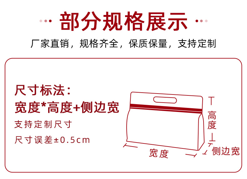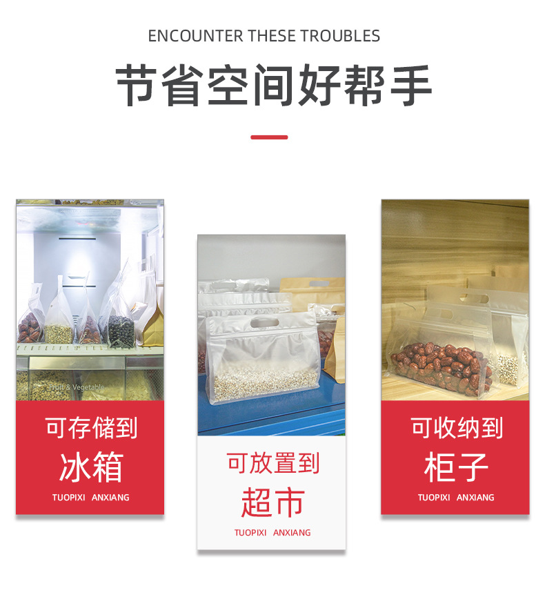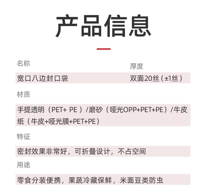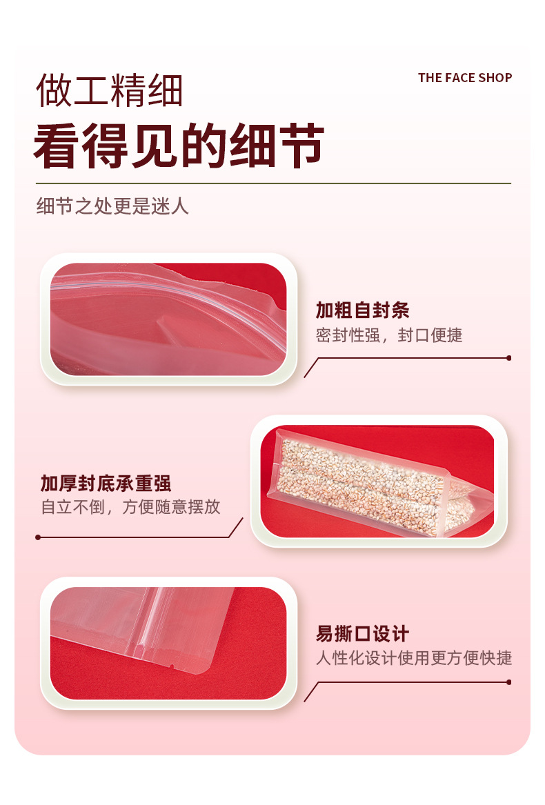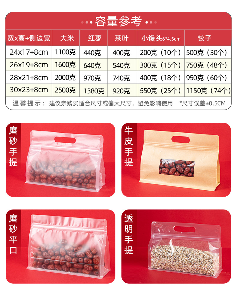 식품 봉인 된 가방 곡물 견과류 빨간색 날짜 포장 투명 젖빛 8 면 씰 보관 휴대용 크래프트 종이 포장 가방