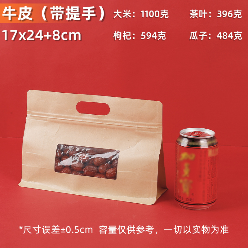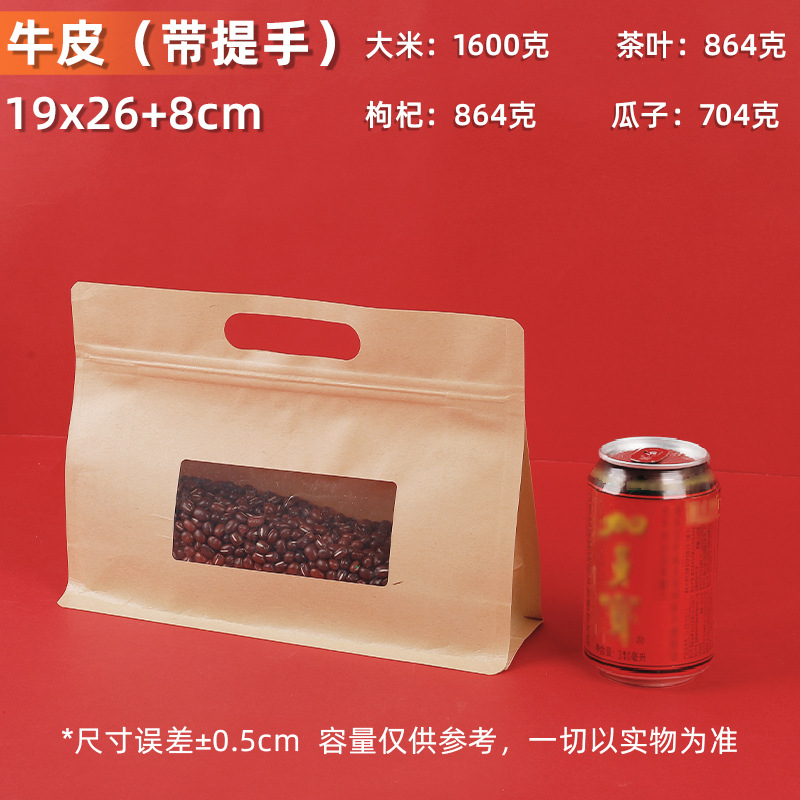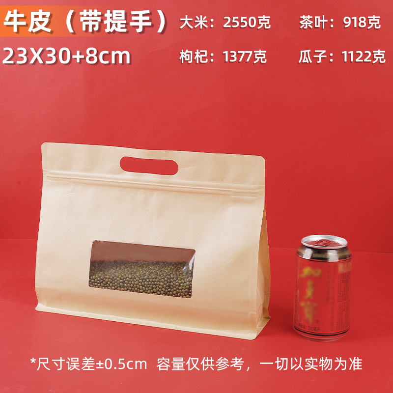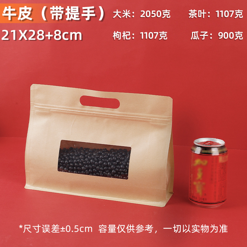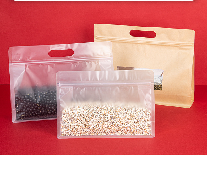 식품 봉인 된 가방 곡물 견과류 빨간색 날짜 포장 투명 젖빛 8 면 씰 보관 휴대용 크래프트 종이 포장 가방스토어 가기