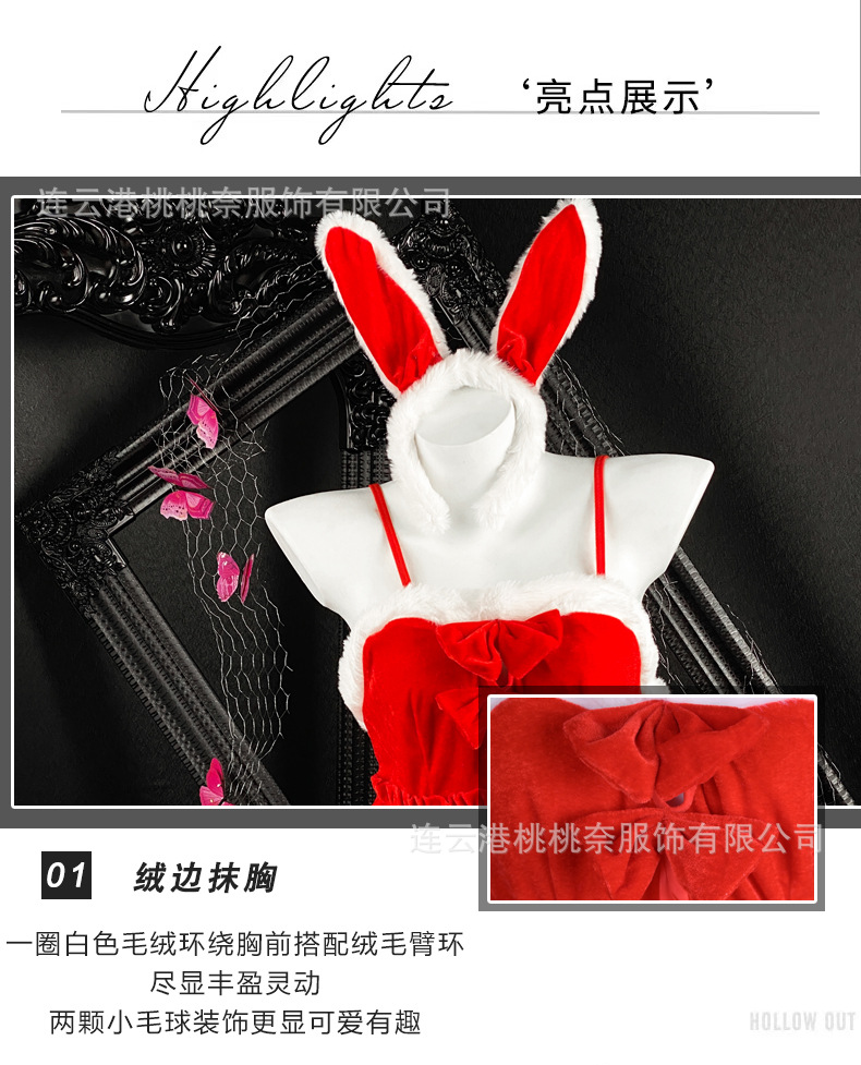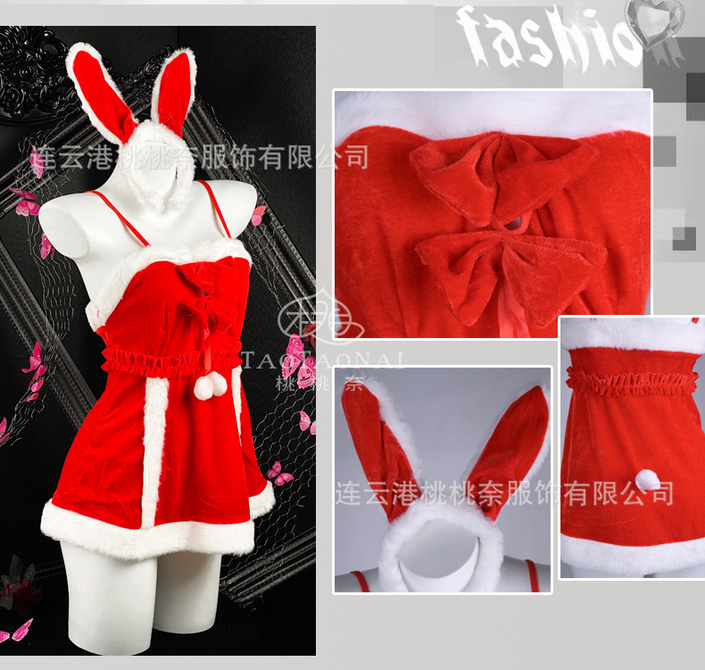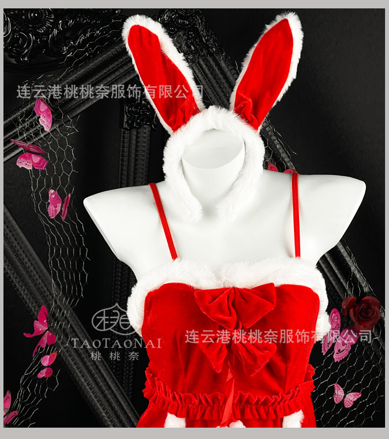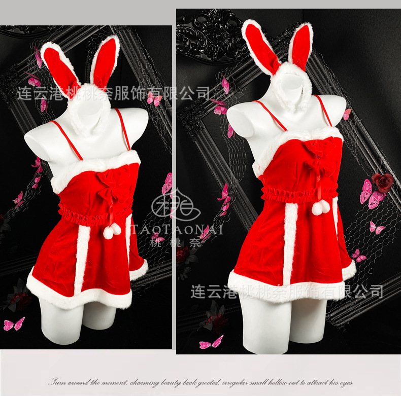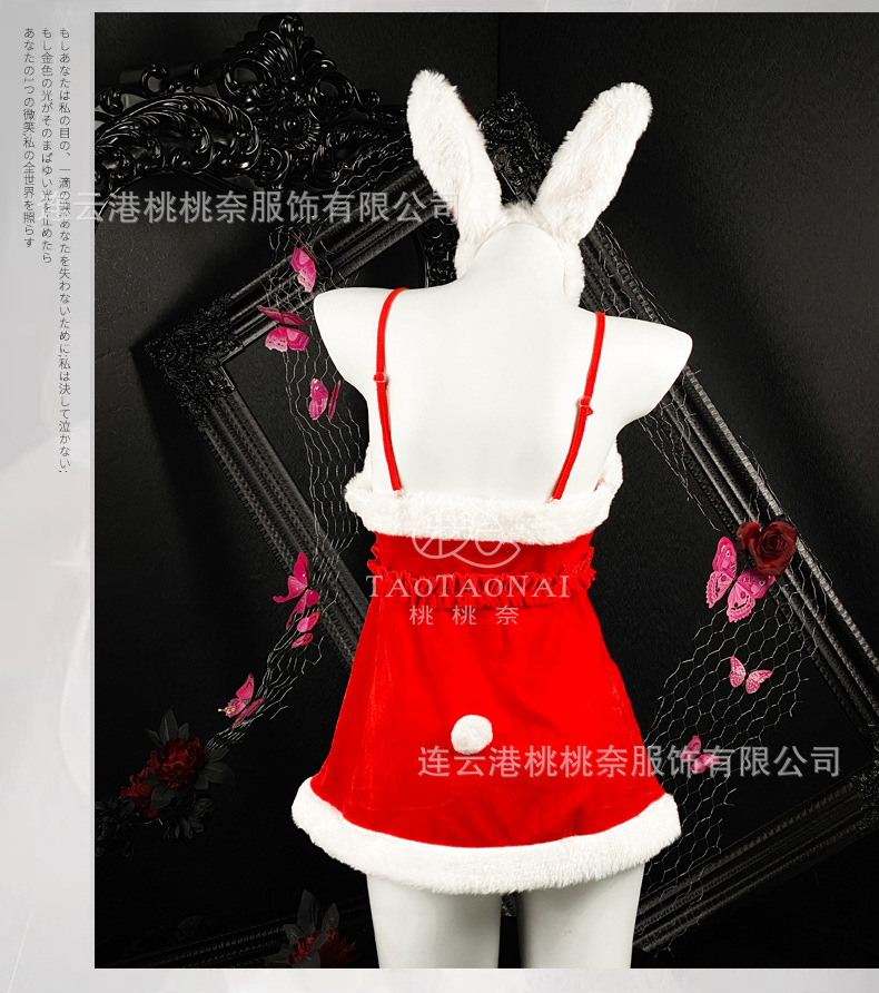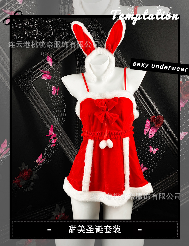 복숭아 복숭아 크리스마스 의상 토끼 섹시한 섹시한 란제리 벨벳 역할 놀이 새해 배틀 가운 유니폼 세트스토어 가기