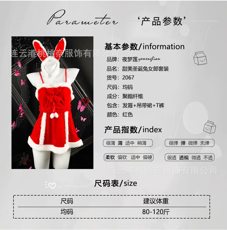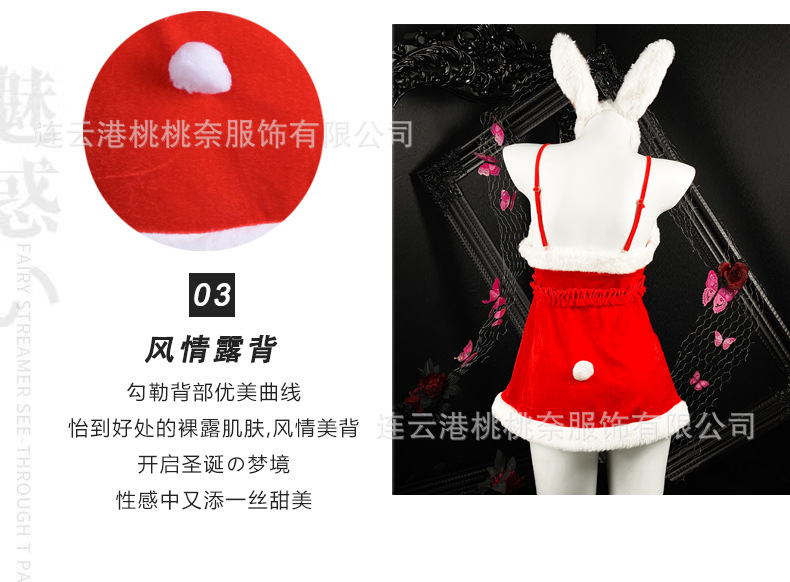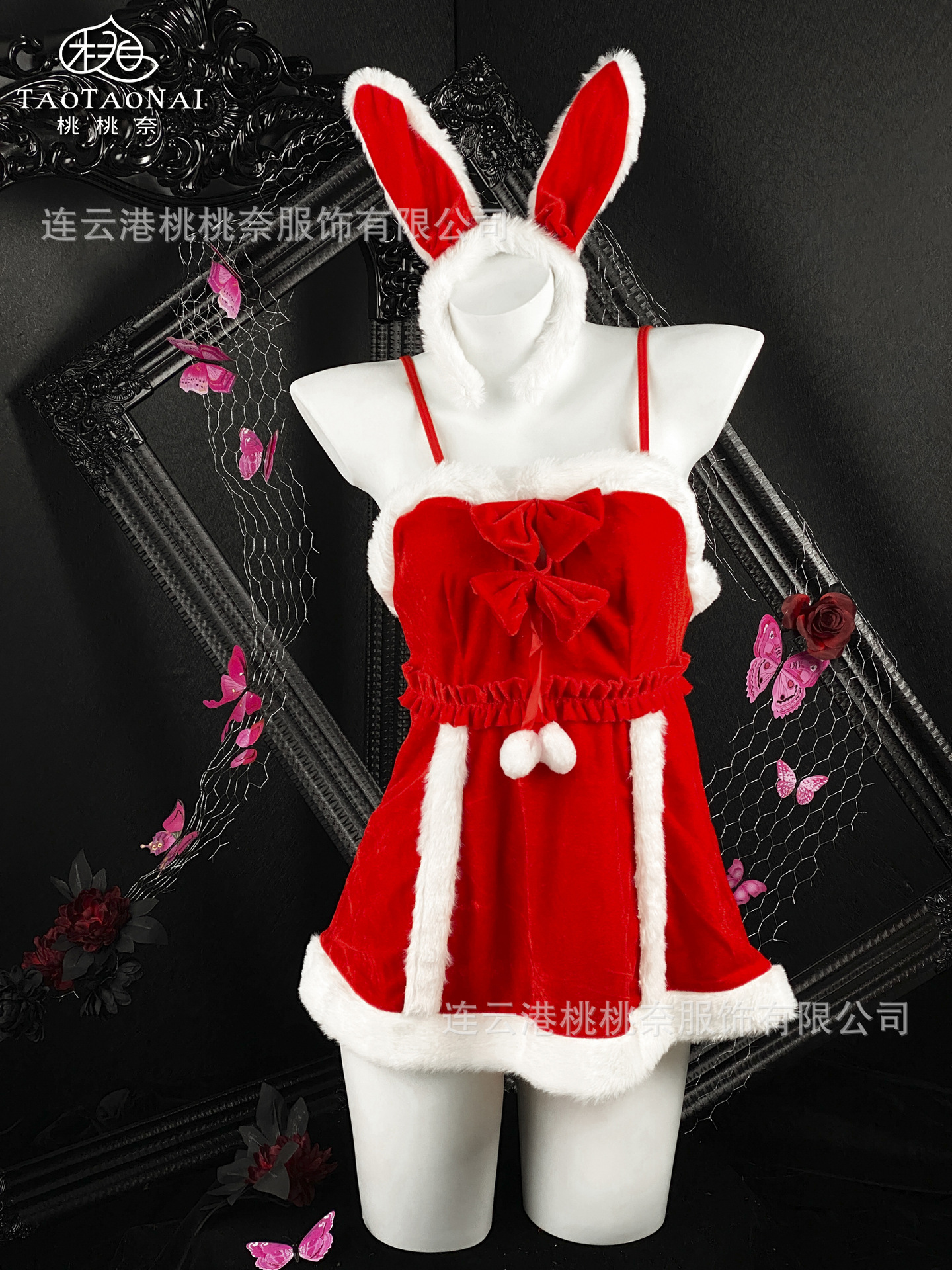 복숭아 복숭아 크리스마스 의상 토끼 섹시한 섹시한 란제리 벨벳 역할 놀이 새해 배틀 가운 유니폼 세트