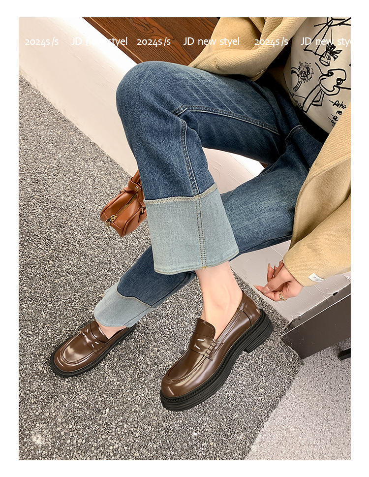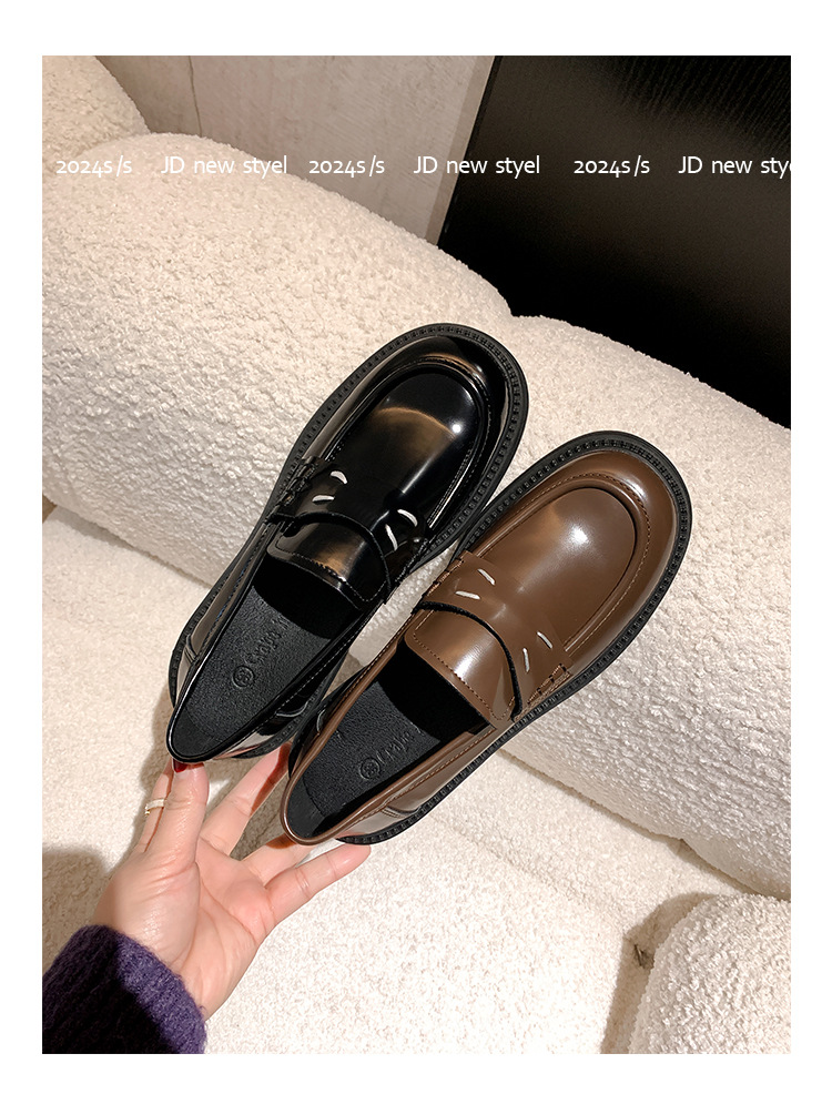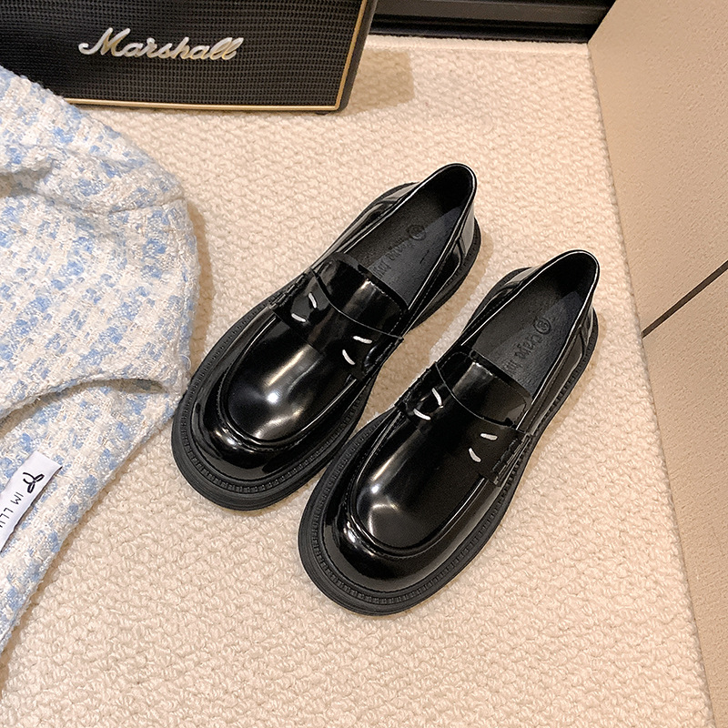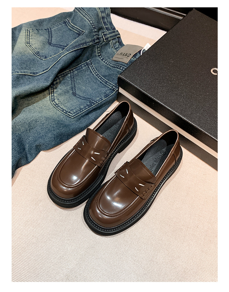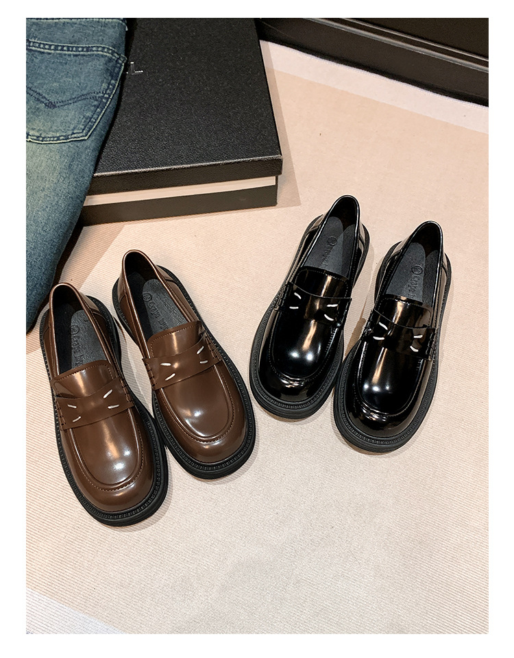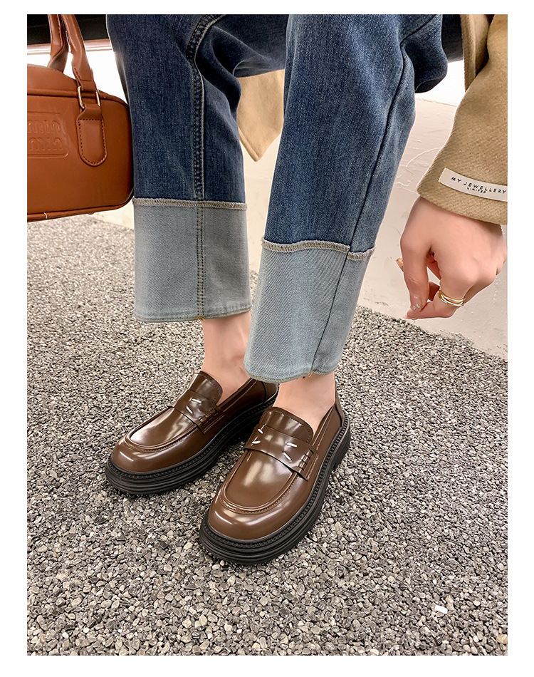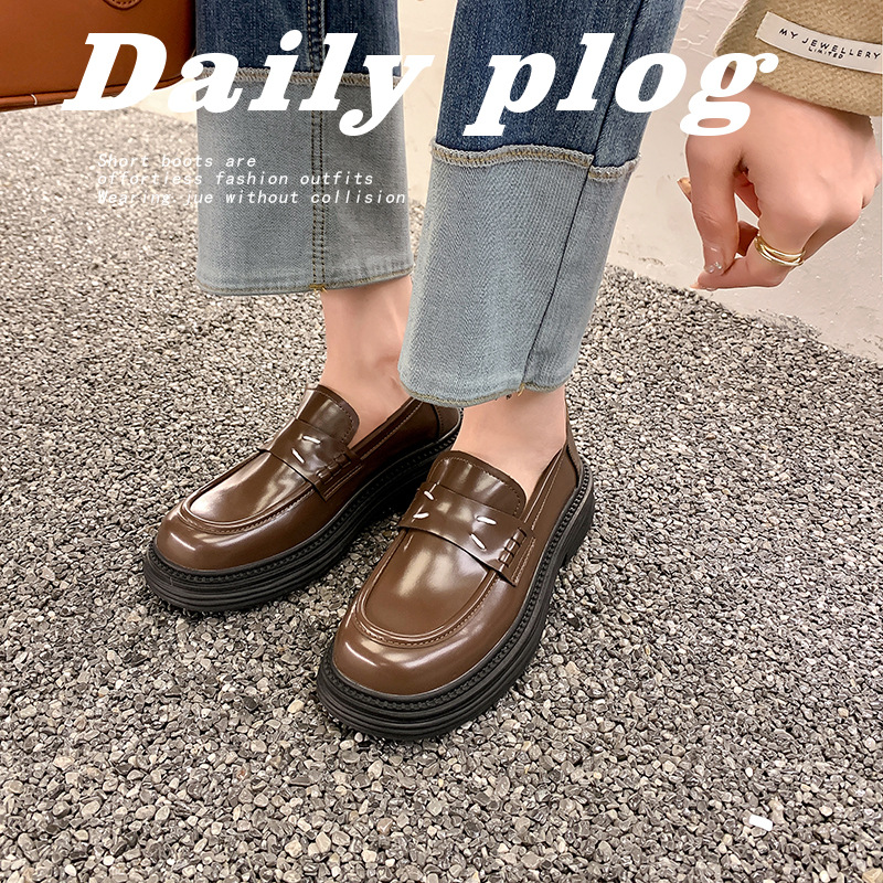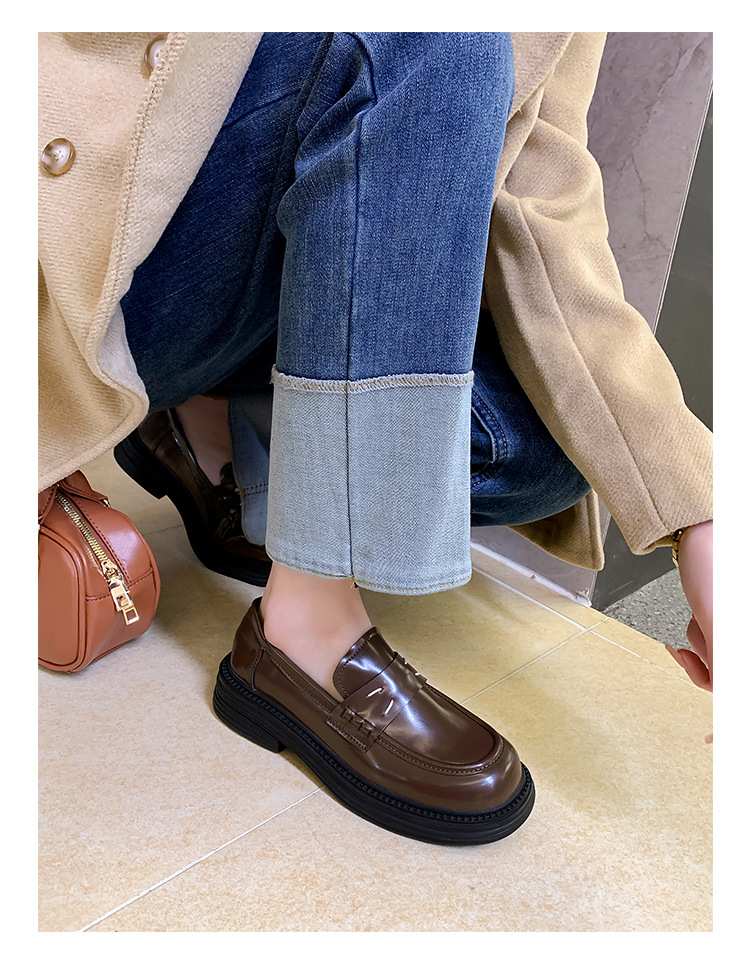 포도 엄마 봄 새로운 영국 복고풍 둥근 발가락 두꺼운 바닥 로퍼 작은 가죽 신발 여성 신발스토어 가기