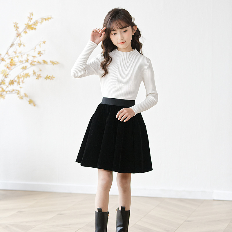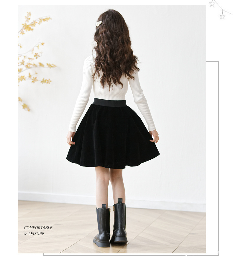 2023 가을 겨울 새 여아 스커트 한국 스타일 중대 어린이 서양식 올매치 블랙 플레인 벨벳 스커트