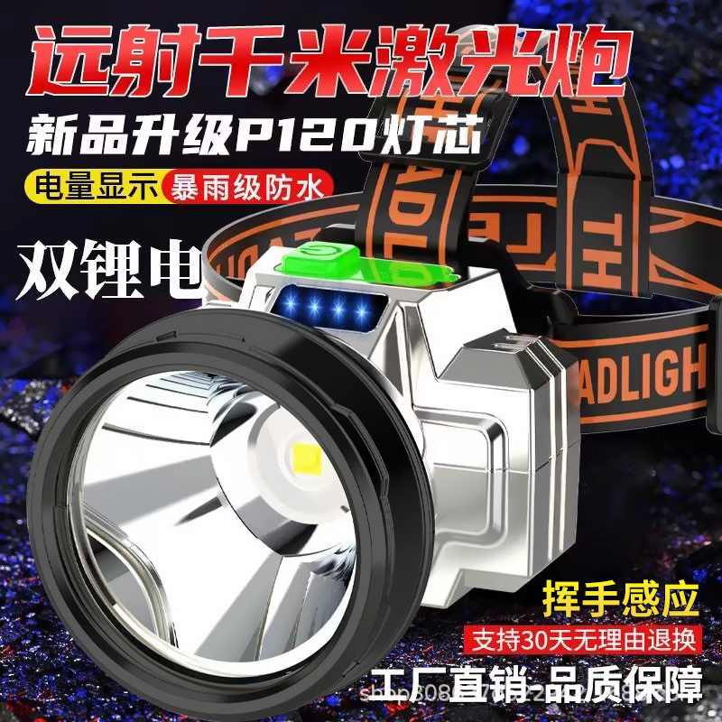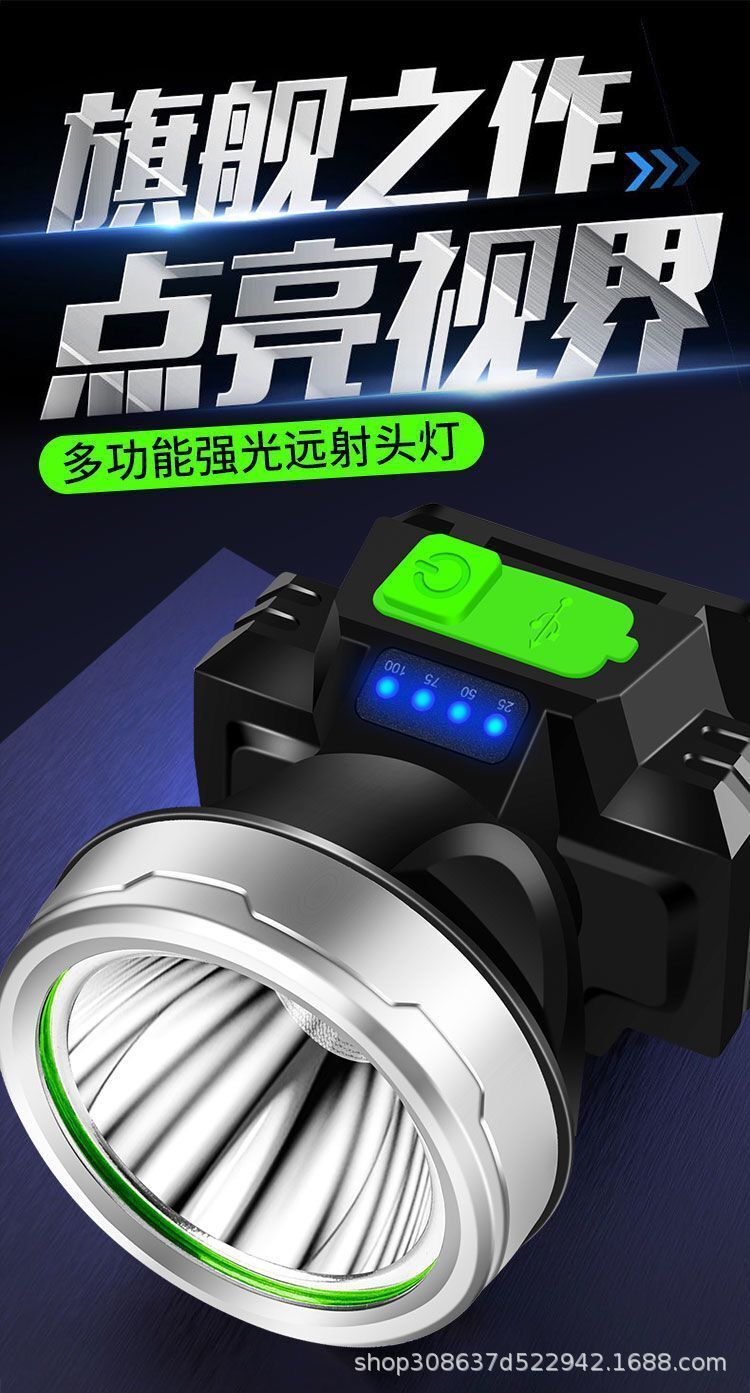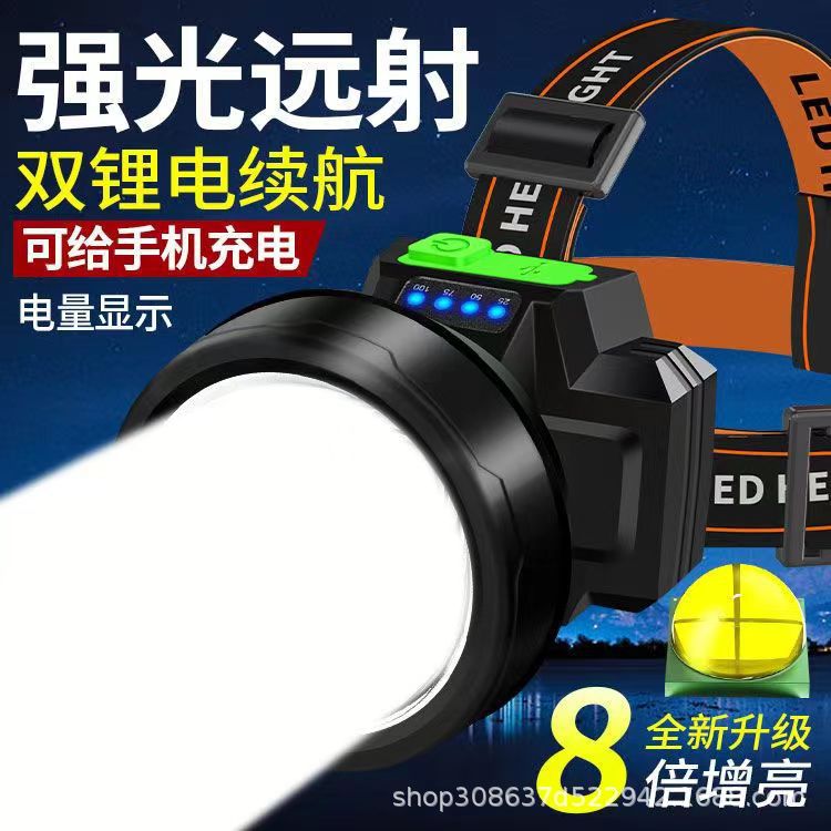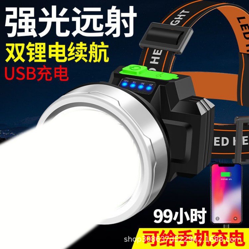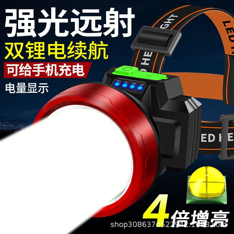 헤드 램프 강한 빛 충전식 야외 슈퍼 밝은 긴 샷 헤드 장착 더블 리튬 배터리 슈퍼 긴 내구성 손전등 야간 낚시스토어 가기
