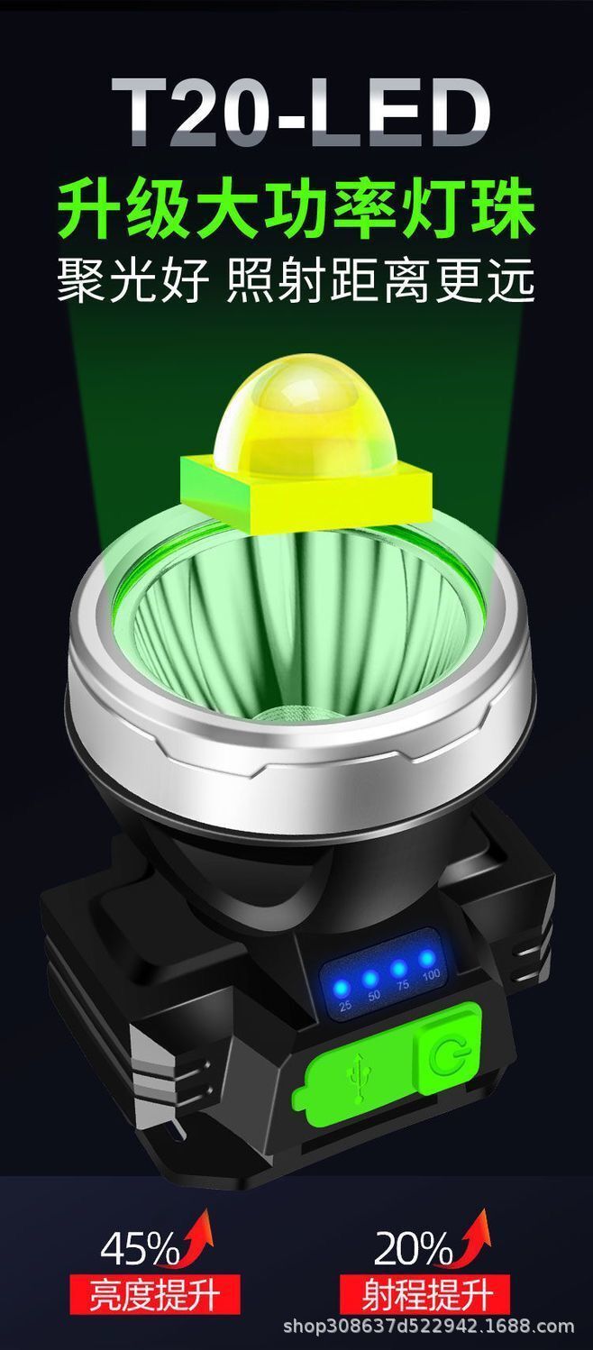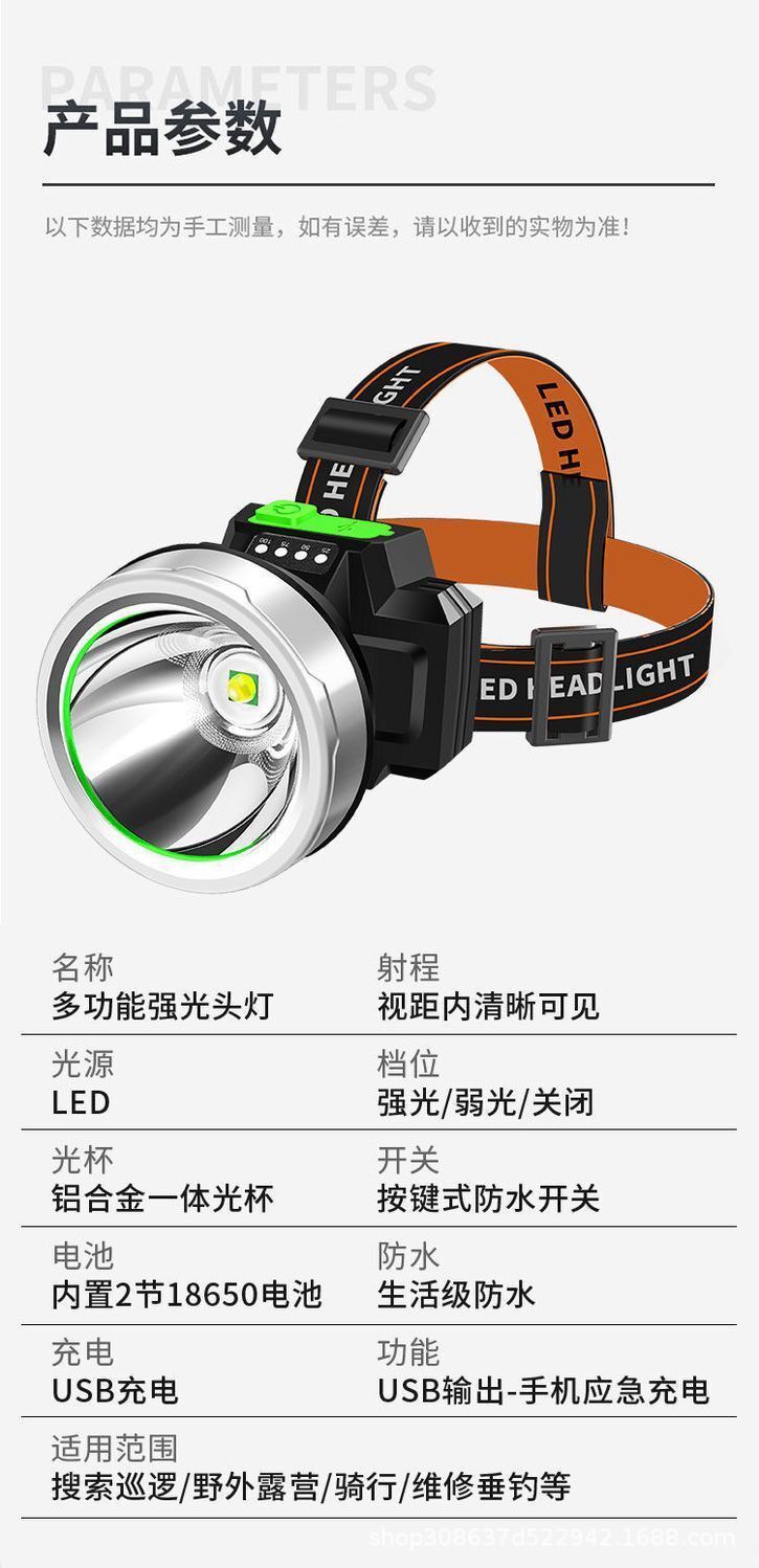 헤드 램프 강한 빛 충전식 야외 슈퍼 밝은 긴 샷 헤드 장착 더블 리튬 배터리 슈퍼 긴 내구성 손전등 야간 낚시