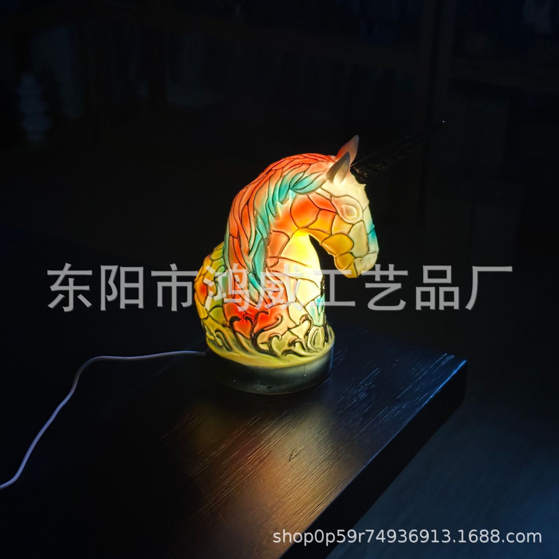 새로운 국경 마법 마법 동물 led 빛 창조적 인 usb 플러그 수지 동상 빛나는 유니콘 장식품스토어 가기