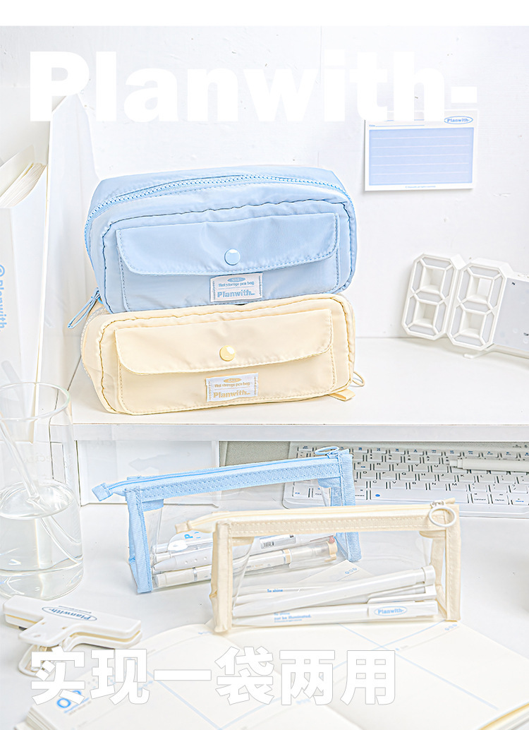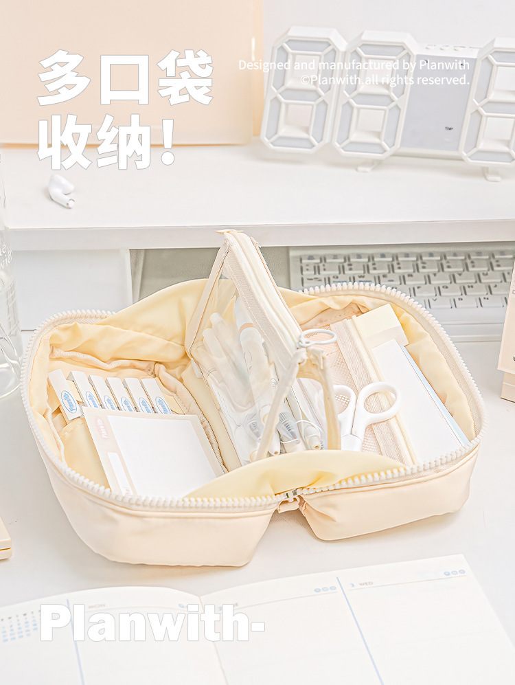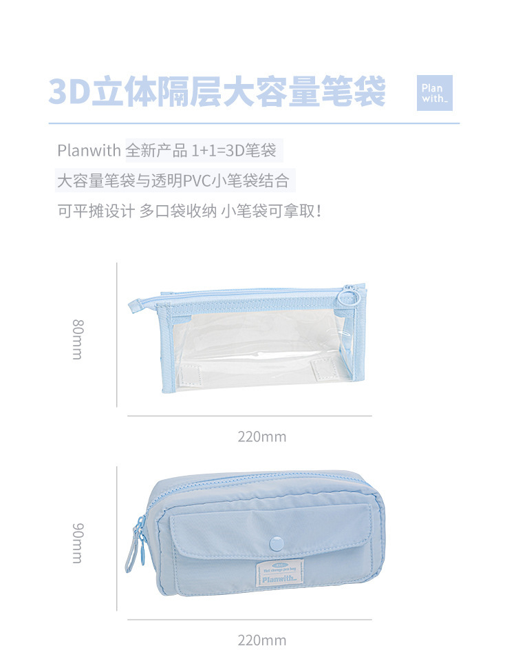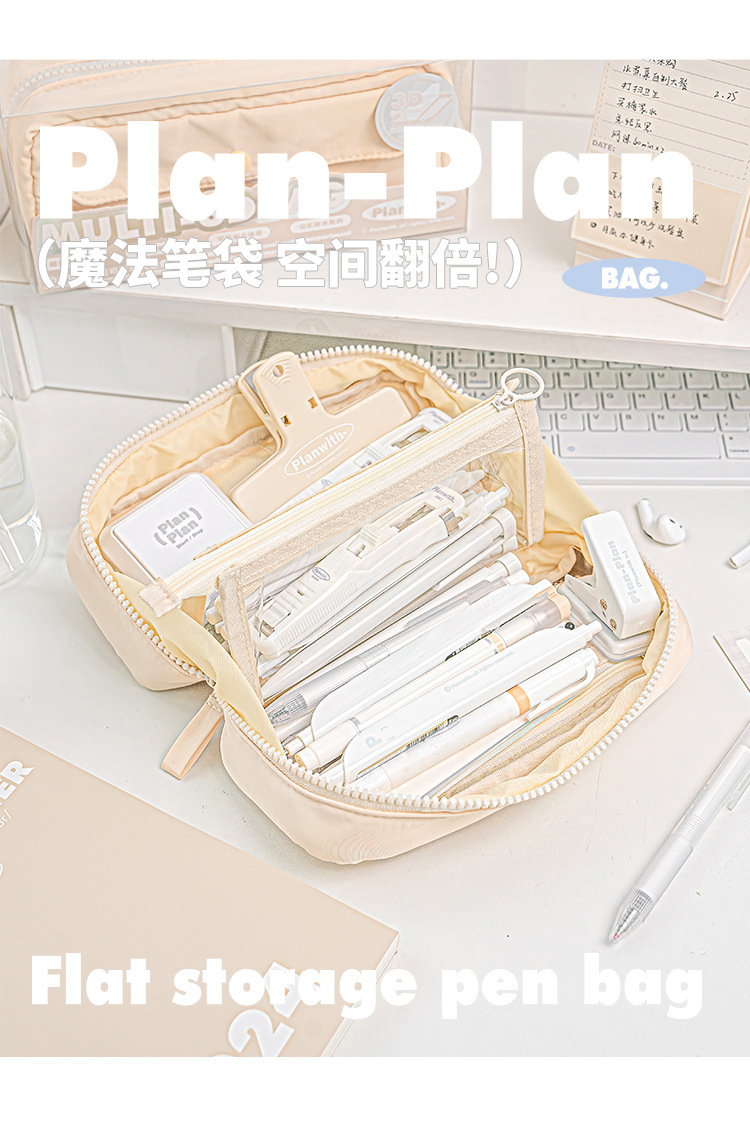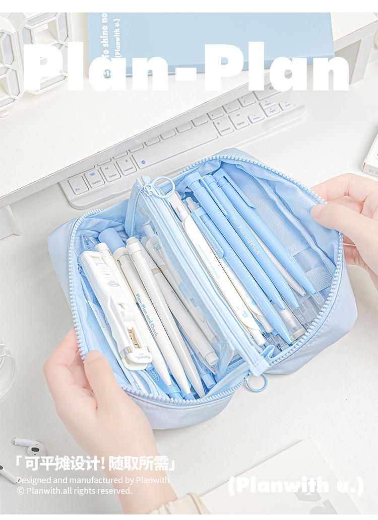 Planwith 친구 계획 3D 3 차원 격실 대용량 연필 케이스 멀티 포켓 저장 가방 공간 매직 연필 케이스