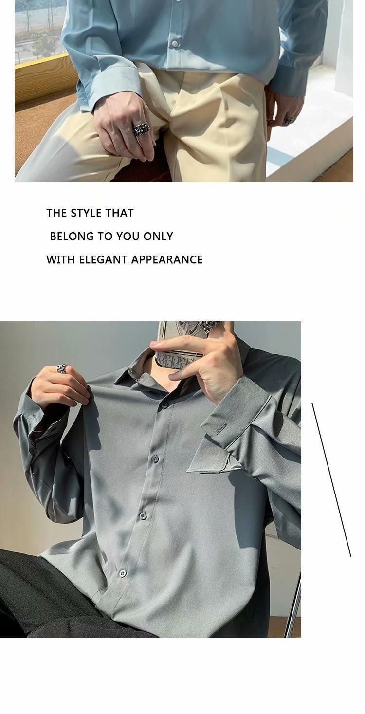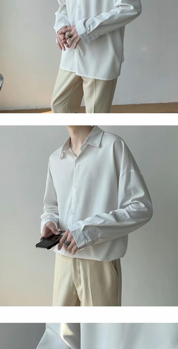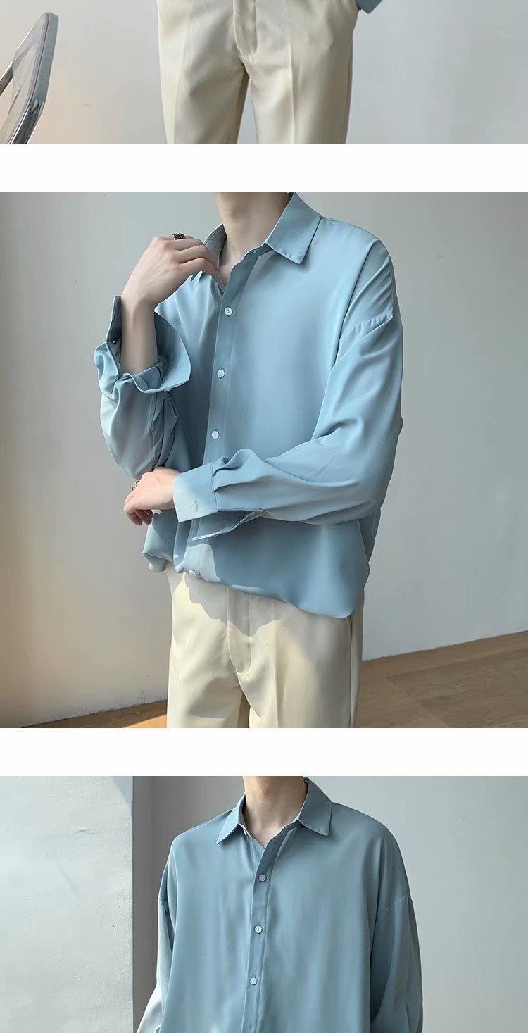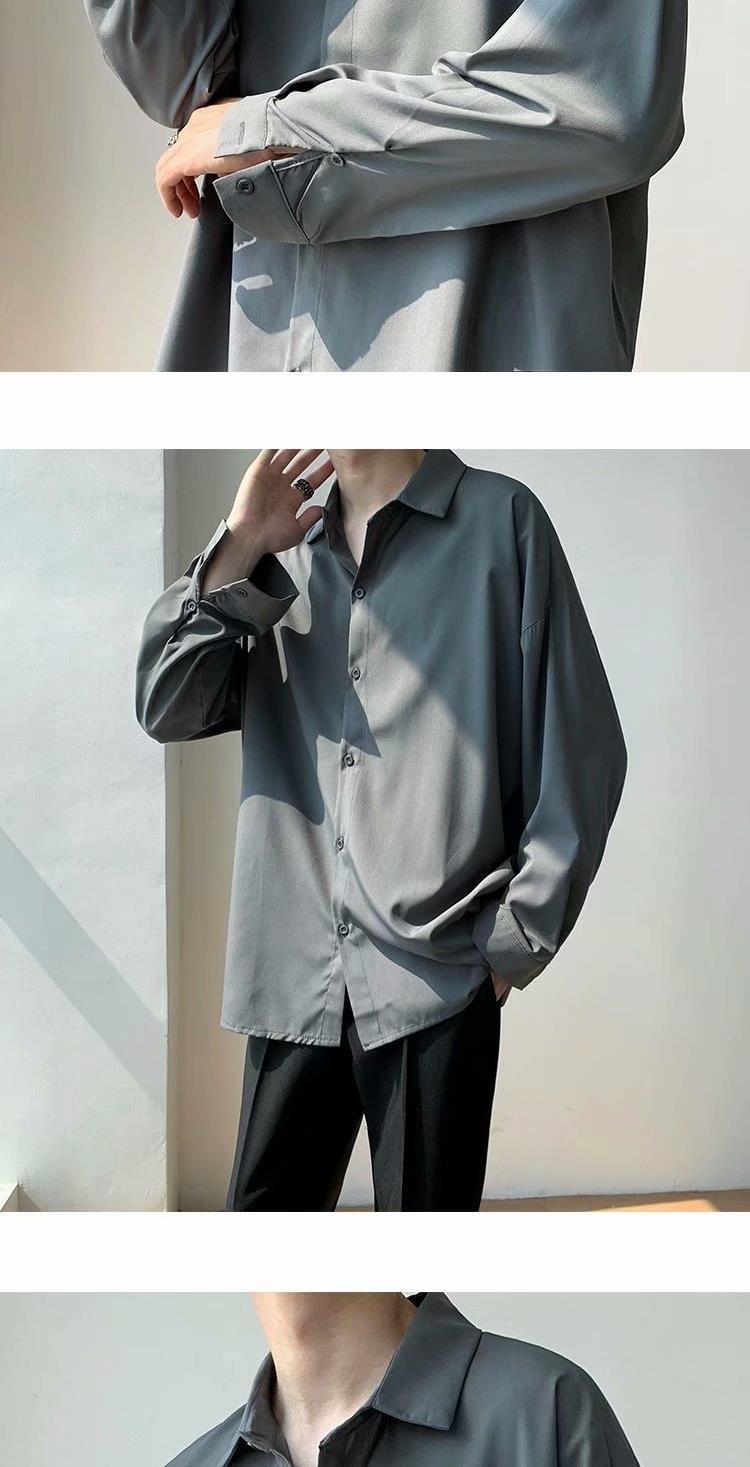 아이스 실크 셔츠 남자 여름 얇은 빛 성숙한 스타일 다이퍼 홍콩 스타일 일본 스타일 화이트 느슨한 긴팔 셔츠 캐주얼 자켓
