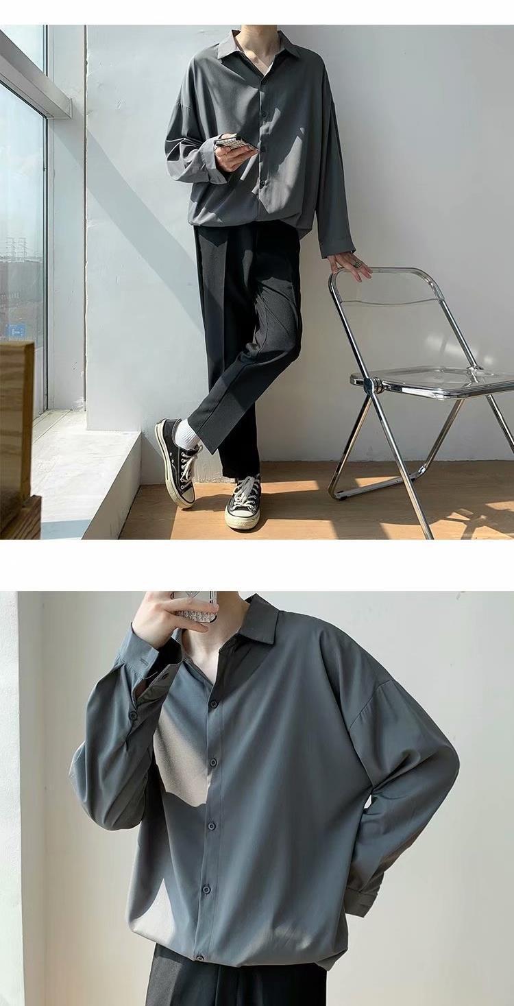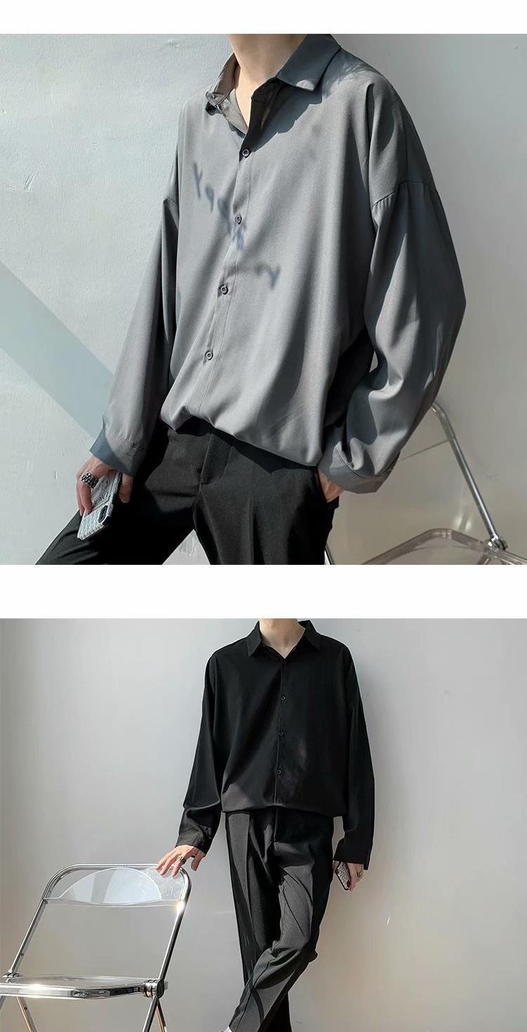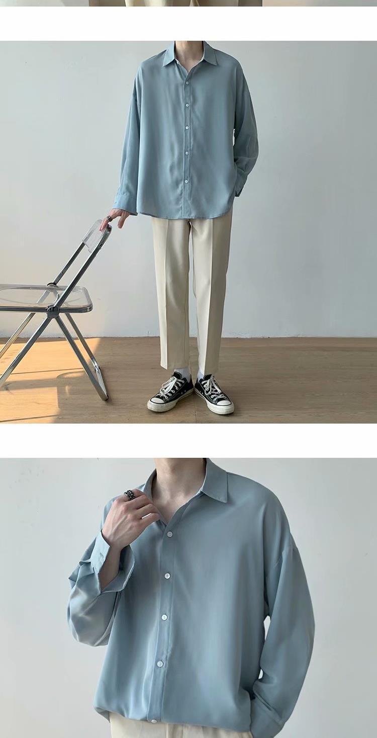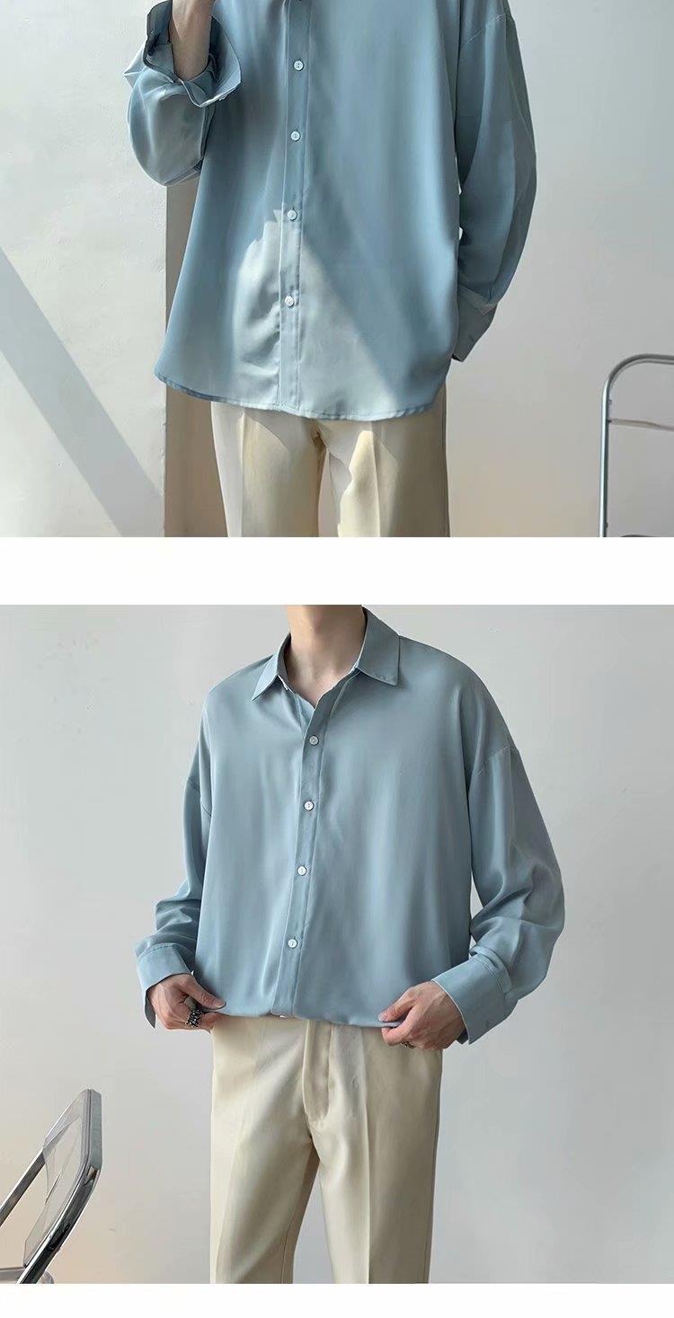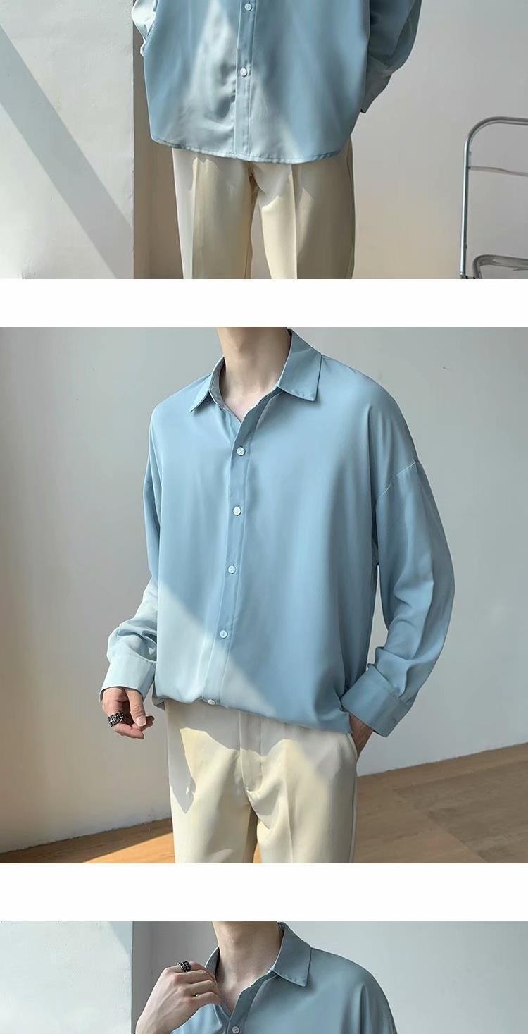 아이스 실크 셔츠 남자 여름 얇은 빛 성숙한 스타일 다이퍼 홍콩 스타일 일본 스타일 화이트 느슨한 긴팔 셔츠 캐주얼 자켓