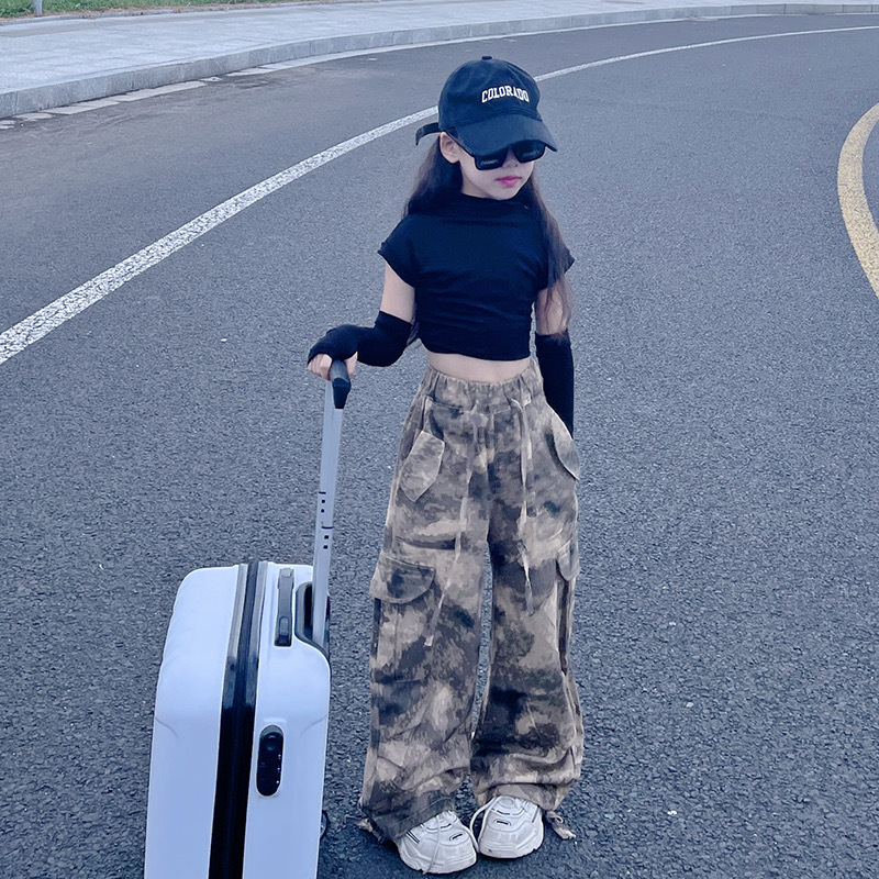 아동용 위장 작업복 여아 2025 봄, 가을 새로운 스타일 가을 의류 중대형 어린이 힙합 루즈 캐주얼 바지스토어 가기